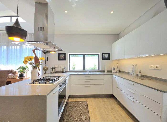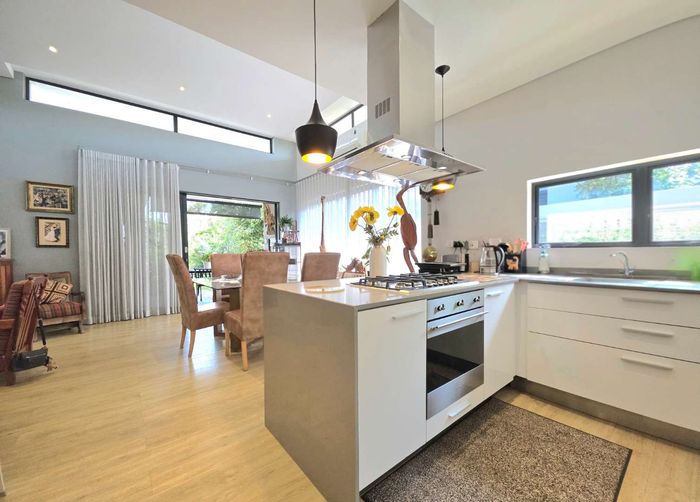 Resort-style living in Steyn City with open-plan double-volume living flowing to a covered patio and wrap-around garden with built-in braai. Three bedrooms, 2.5 baths, double garage.