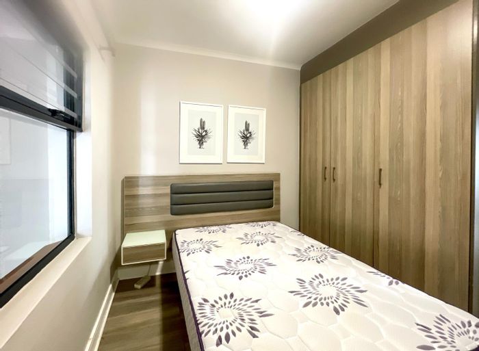 1 bedroom, 1 bathroom bachelor apartment in Bryanston, 31 m² with private garden and covered parking.