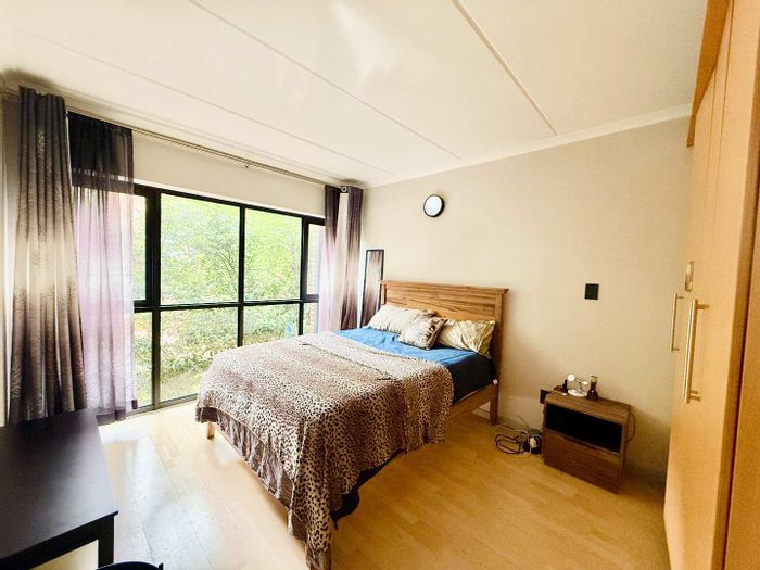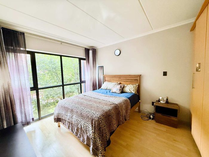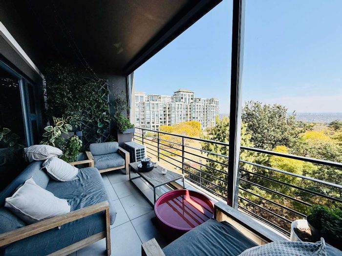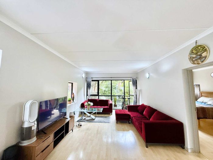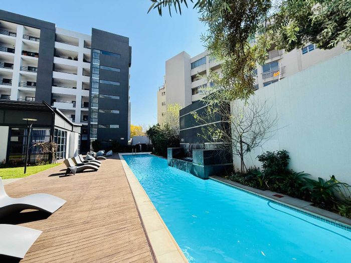 Live centrally in Bryanston with a sunlit open-plan apartment opening onto a private balcony, pool access, and minutes from Sandton CBD — two bedrooms, one bath, covered parking.