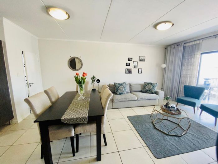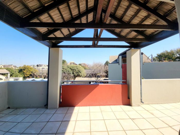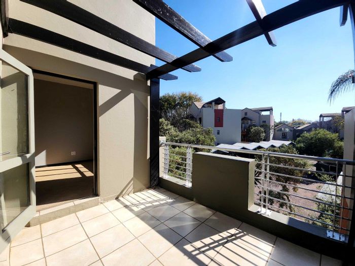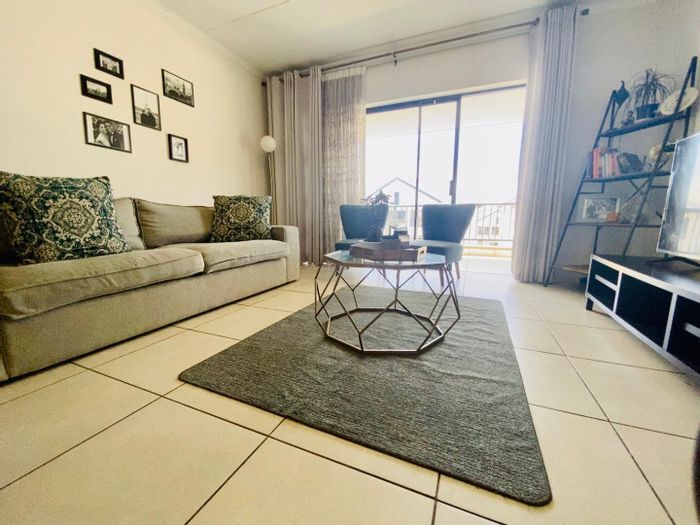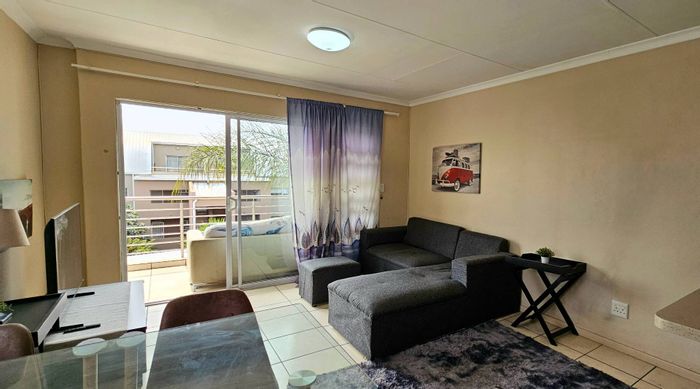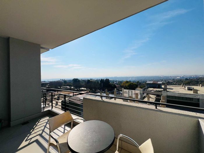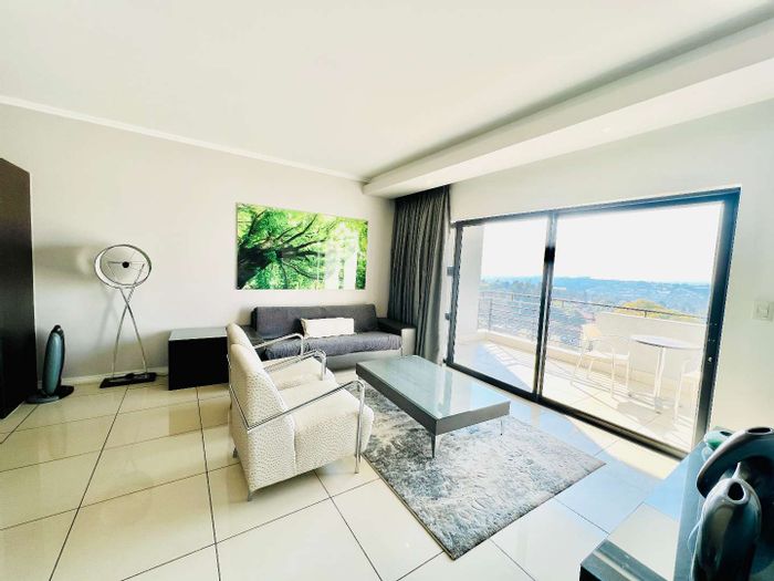 Sunlit top-floor urban retreat in Rivonia with a furnished lounge opening to a patio and built‑in braai — walkable to shops, restaurants and quick highway access. 1 bed, 1 bath.