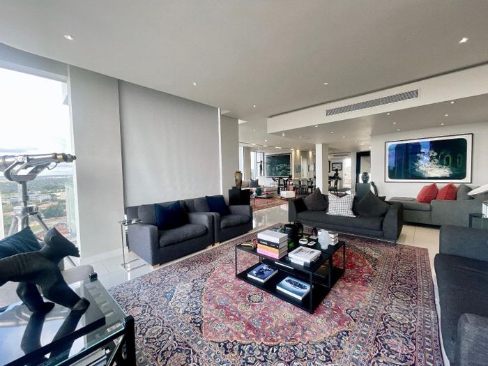 Four-bedroom, 4.5-bathroom penthouse in Sandton, featuring 660 m² of luxury living space and a private four-car garage.