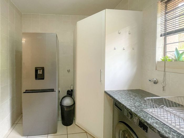 Enjoy sophisticated city living in Upper Waterkloof, minutes from Menlyn Mall, Menlyn Maine and the N1; furnished 2-bedroom, 2-bath unit with covered parking.