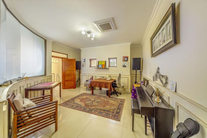 Gas fireplaces add warmth and ambience, while smart home automation via Alexa allows you to control music and lighting effortlessly. Italian finishes and imported European furniture add to the luxurious atmosphere. Additional features include a staff room, a bespoke kitchen and scullery, a pantry, a bar area, and a pop-up spice cabinet.
