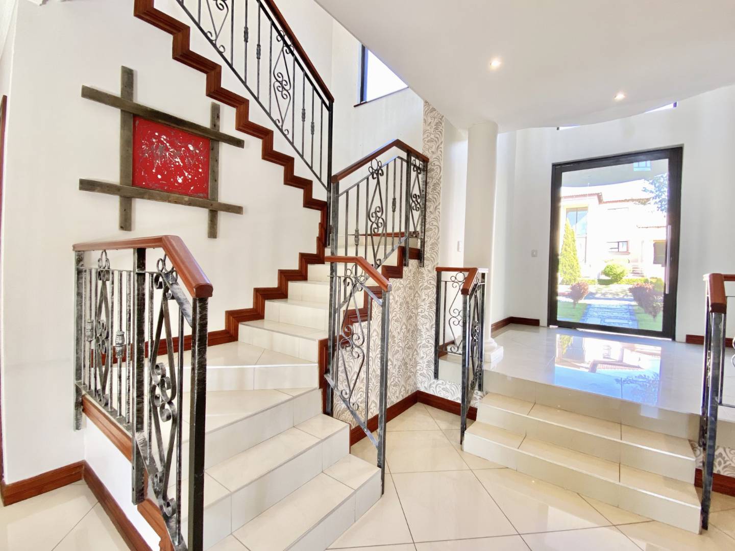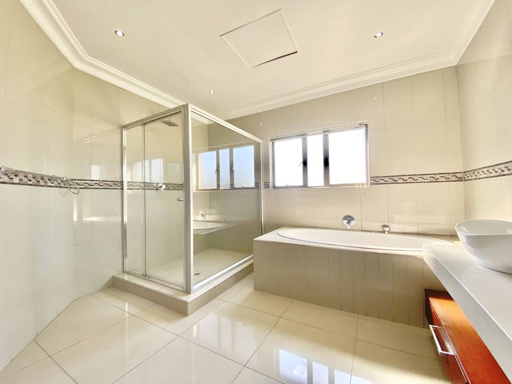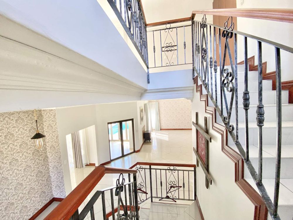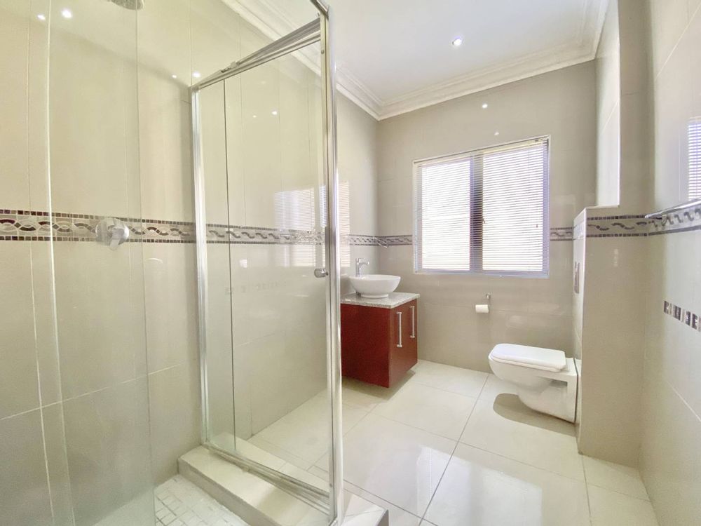 The outdoor area includes staff quarters with an adjoining toilet and shower. The house also includes three garages, providing ample parking and storage space. It is eco-friendly, equipped with a solar system and gas geysers, contributing to sustainable living.