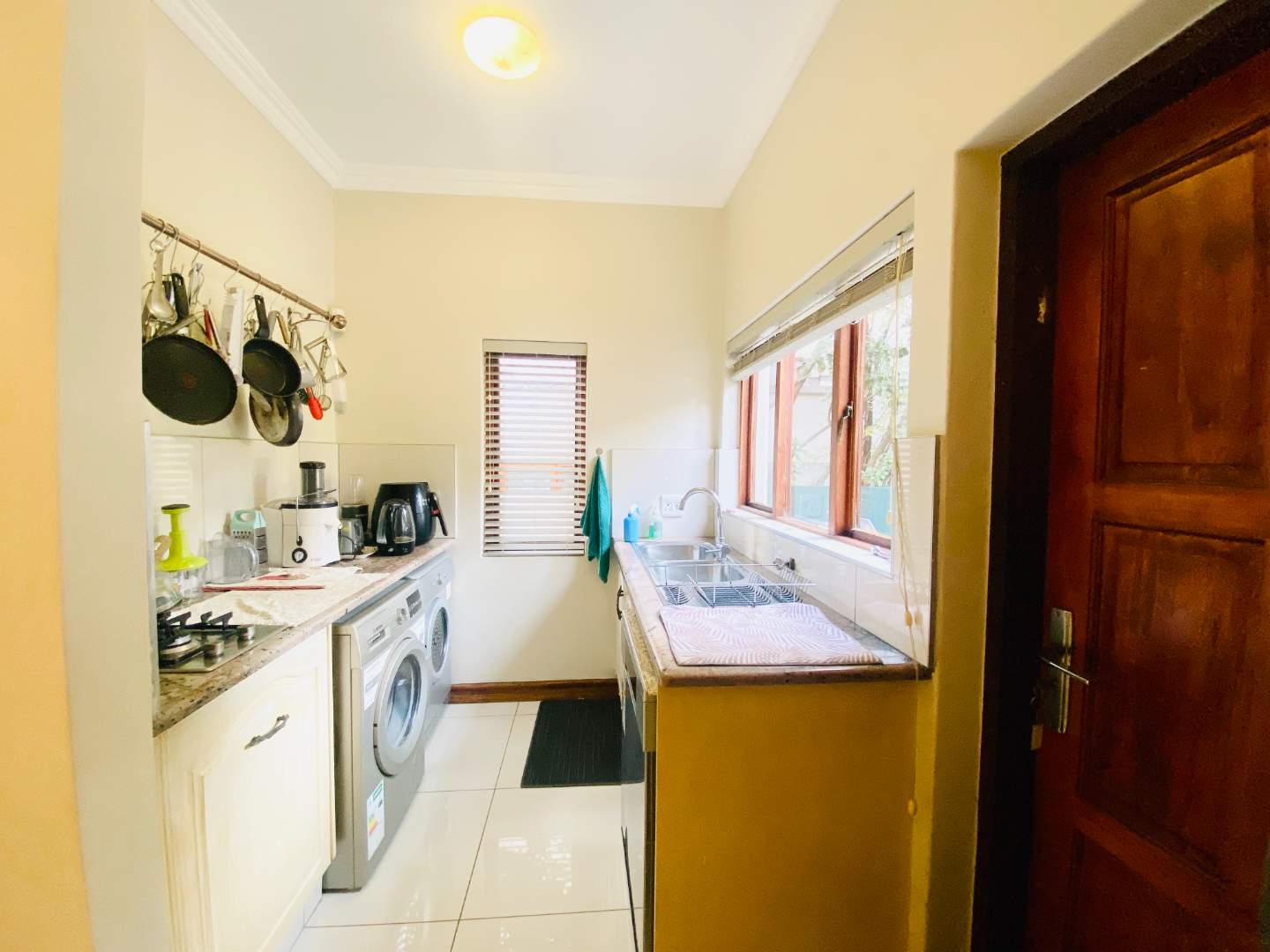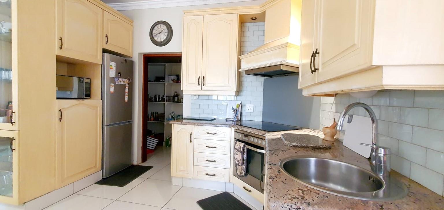Inside, to the left, is a well-designed kitchen equipped with modern appliances, ample countertop space, a scullery, and a pantry. These features provide convenient storage and food preparation areas, ensuring a clutter-free culinary space.
