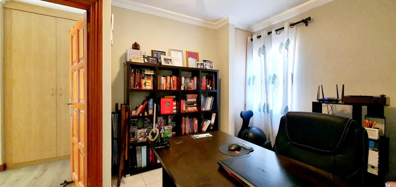 The ground floor open space includes a TV lounge complemented by a fireplace, perfect for keeping the entire area warm during colder weather. Separated from the living area is a dedicated space that offers a comfortable work-from-home or study environment, ensuring a quiet and productive setting. Additionally, this wing includes a generously sized bedroom with a full bathroom, ensuring that guests or family members have their own private space to relax and unwind. A guest toilet on this level adds further convenience.