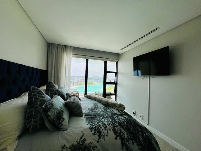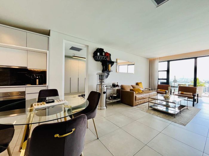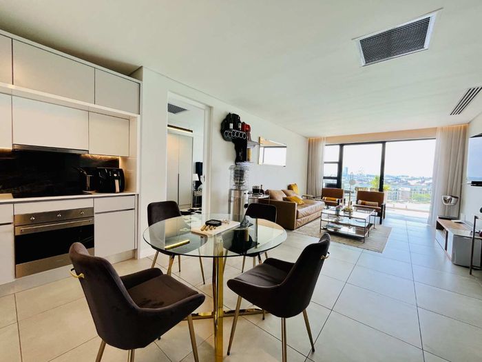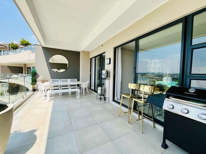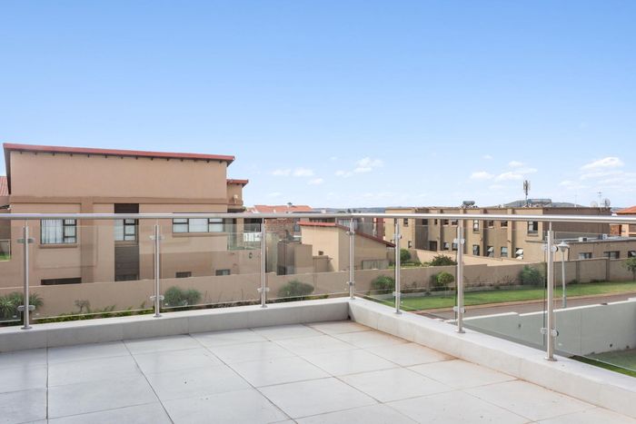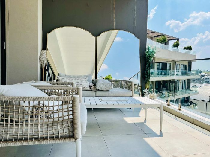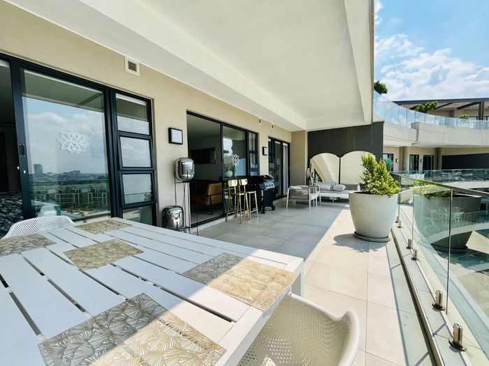 Elevated urban living in Waterfall City with sweeping Magaliesburg and Sandton views; two-level penthouse featuring a 110 sqm patio with pool and jacuzzi, two beds, 2.5 baths, double garage.