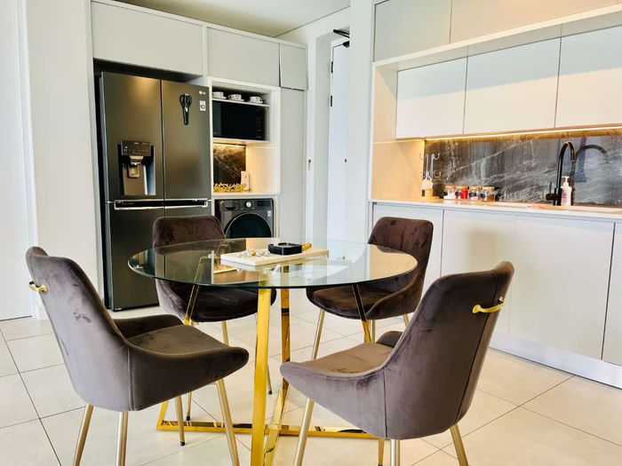 Resort-style living in Steyn City Estate with golf, lagoon and scenic trails; sleek open-plan apartment with integrated Miele kitchen, one bedroom, one bathroom and covered parking.