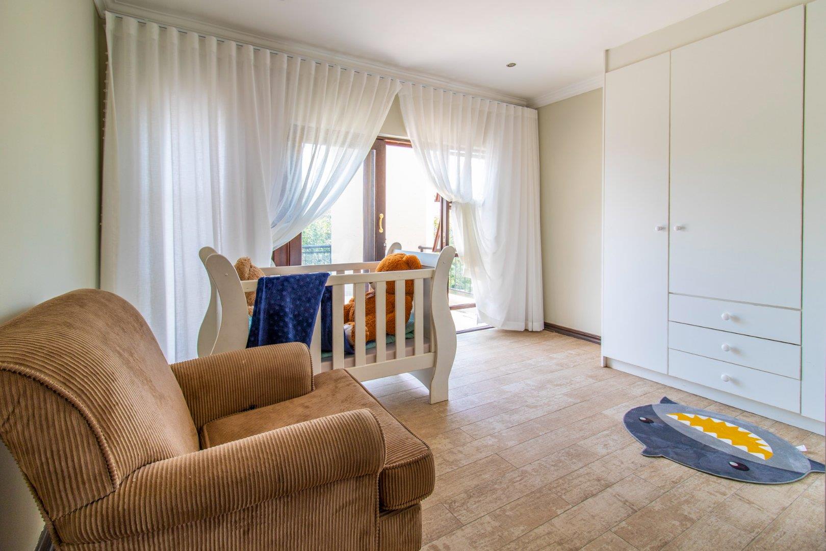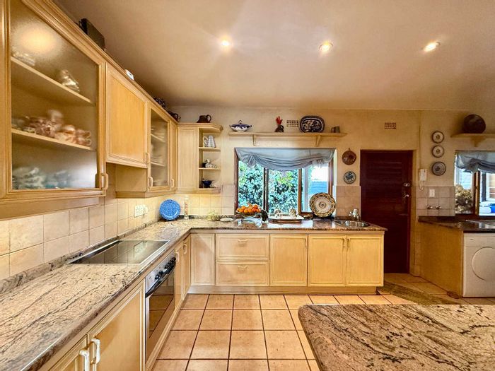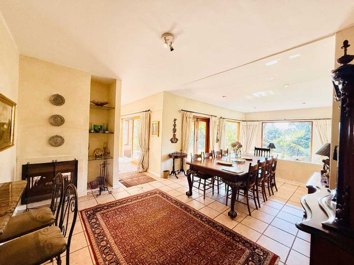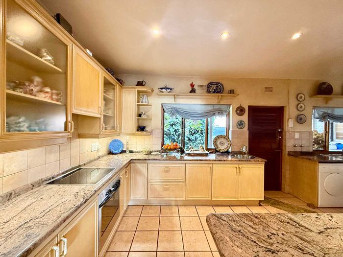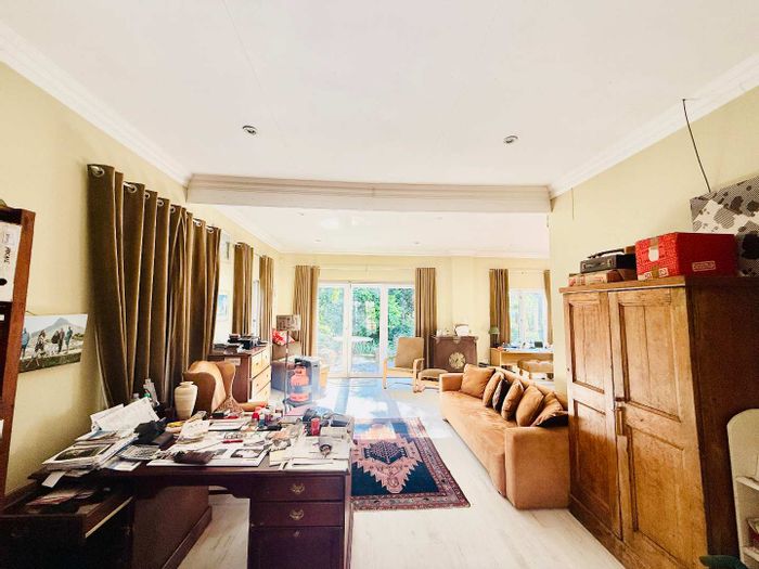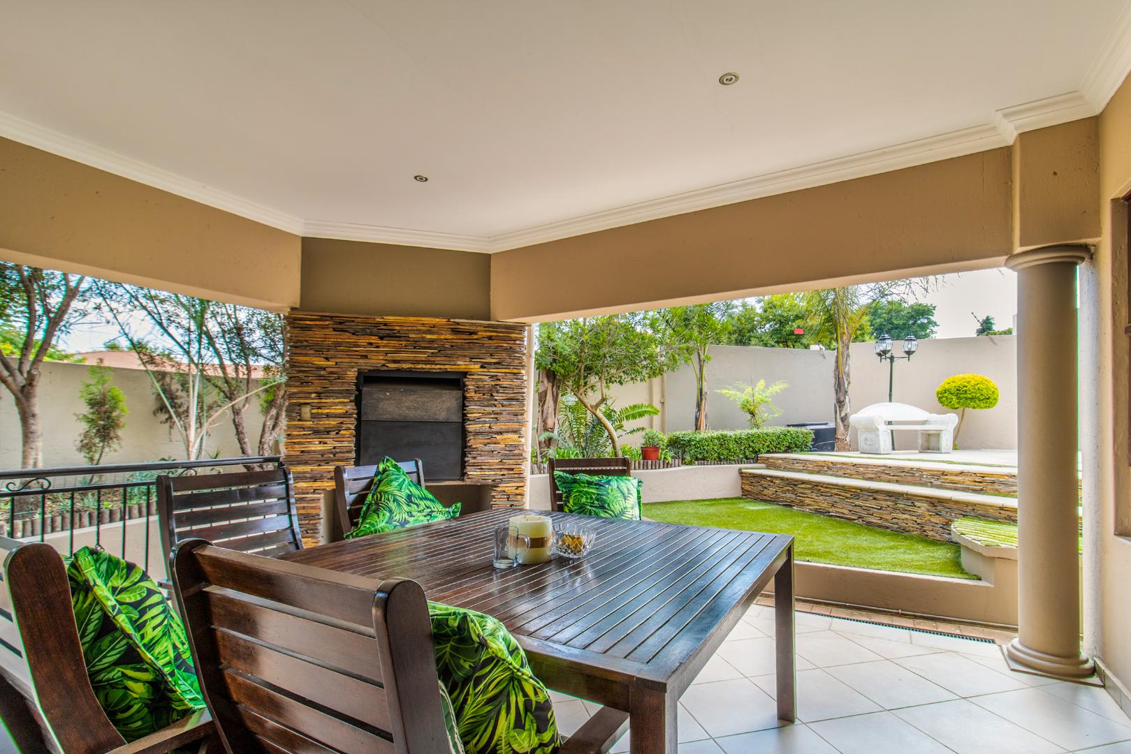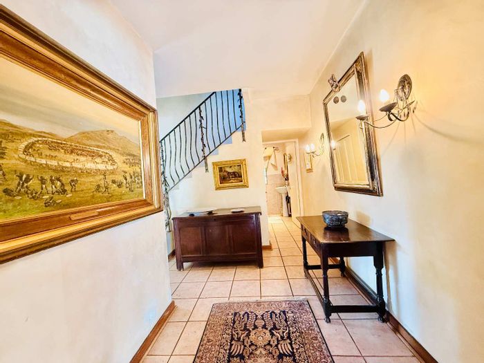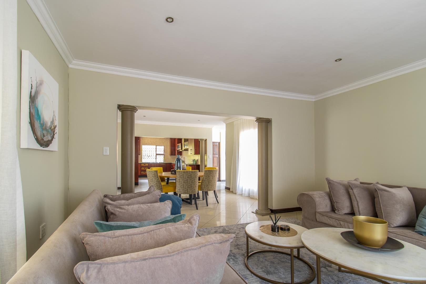 As you enter this stunning residence, you are welcomed by a spacious entrance hall that seamlessly flows into an expansive dining area and a grand formal living room. The formal living space transitions effortlessly to a cosy family room and a charming patio, featuring a built-in braai. This area is perfect for entertaining guests while enjoying serene views of the beautifully landscaped, low-maintenance garden and the sparkling swimming pool.