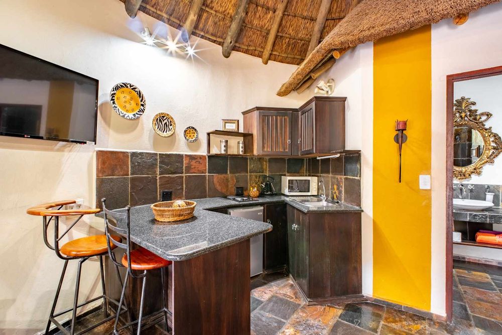 - 13 Thatched Chalets: Elegantly decorated with African flair, featuring energy-efficient thermo-insulated flooring for year-round comfort.