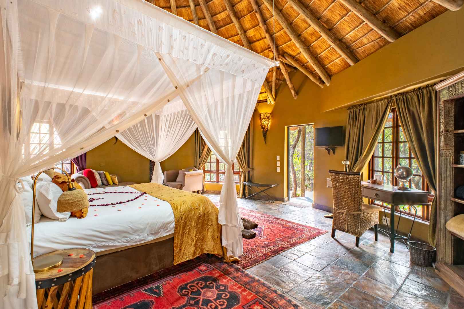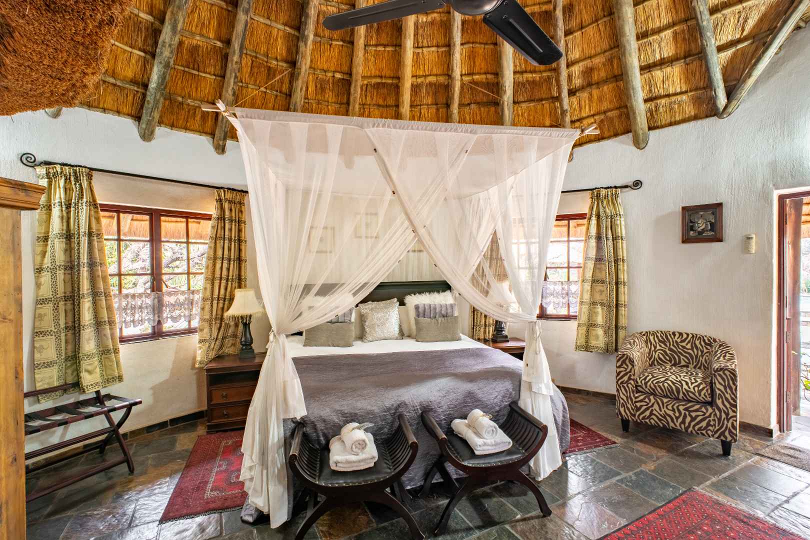 - African Ambience: Surrounded by aloes, acacia trees, abundant birdlife, and free-roaming guinea fowl, creating a restful bush-like atmosphere.