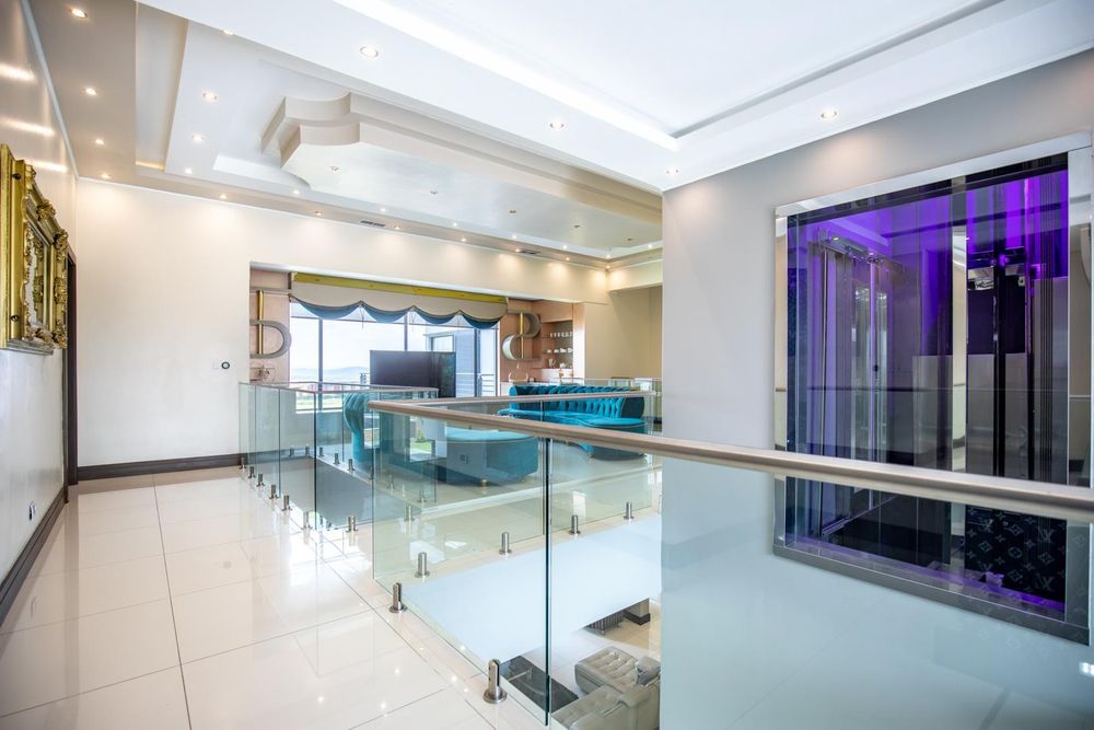 Large stand and over 1000 sqm under roof, the house has it all and more. Double volume entrance hall greets you with light, crystal chandeliers and a view of the lift and Louis Vuitton wall paper. The lift is finishes in chrome and features glass panels, the better to enjoy the experience, plus it has sound and mood lights. Multiple living spaces lead from each other, offering formal and informal entertaining. Chef's kitchen with built-in appliances and a scenic countertop with seating is the place to be if you love cooking, a scullery offering additional cooking space for catering purposes.