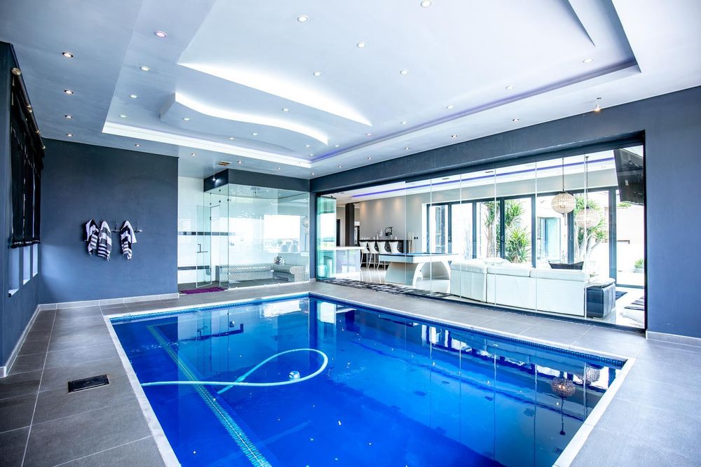 The social spaces include a built-in bar with a wine cellar, massive social room with space for a pool table and salt water heated indoor pool with a steam room and changing rooms.
