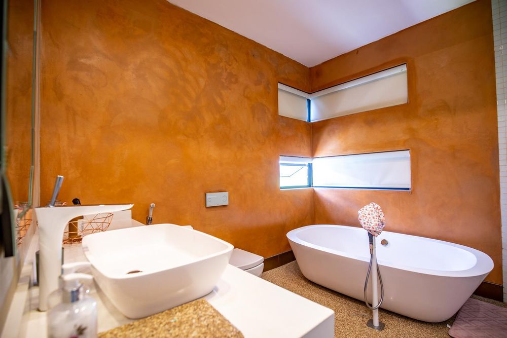 The ground floor also includes a gym area, another guest toilet and a guest suite, uniquely designed in shades of grey and charcoal, full ensuite and lounge area.