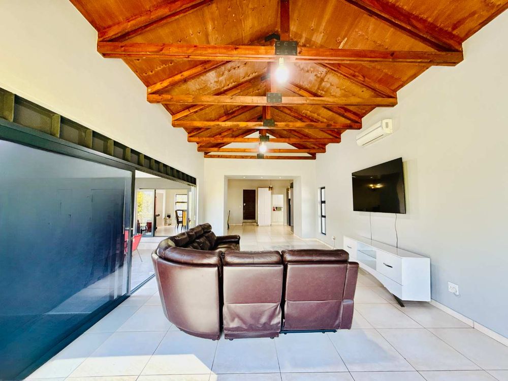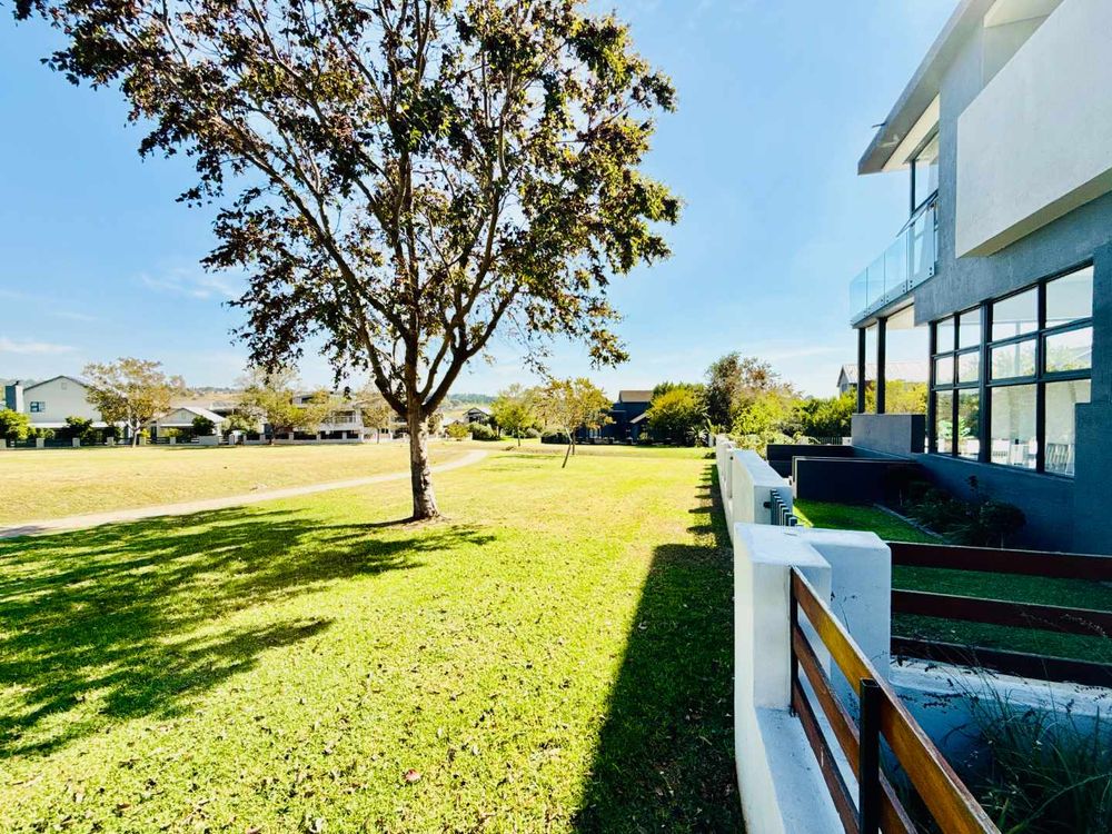 The heart of the home is an expansive open-plan living area, including a modern kitchen, dining room, TV lounge, and cozy living space—all seamlessly flowing together. Large sliding doors lead to a generous entertainment patio with a built-in braai, ideal for hosting family and friends while enjoying uninterrupted views of the park and lush greenery.
