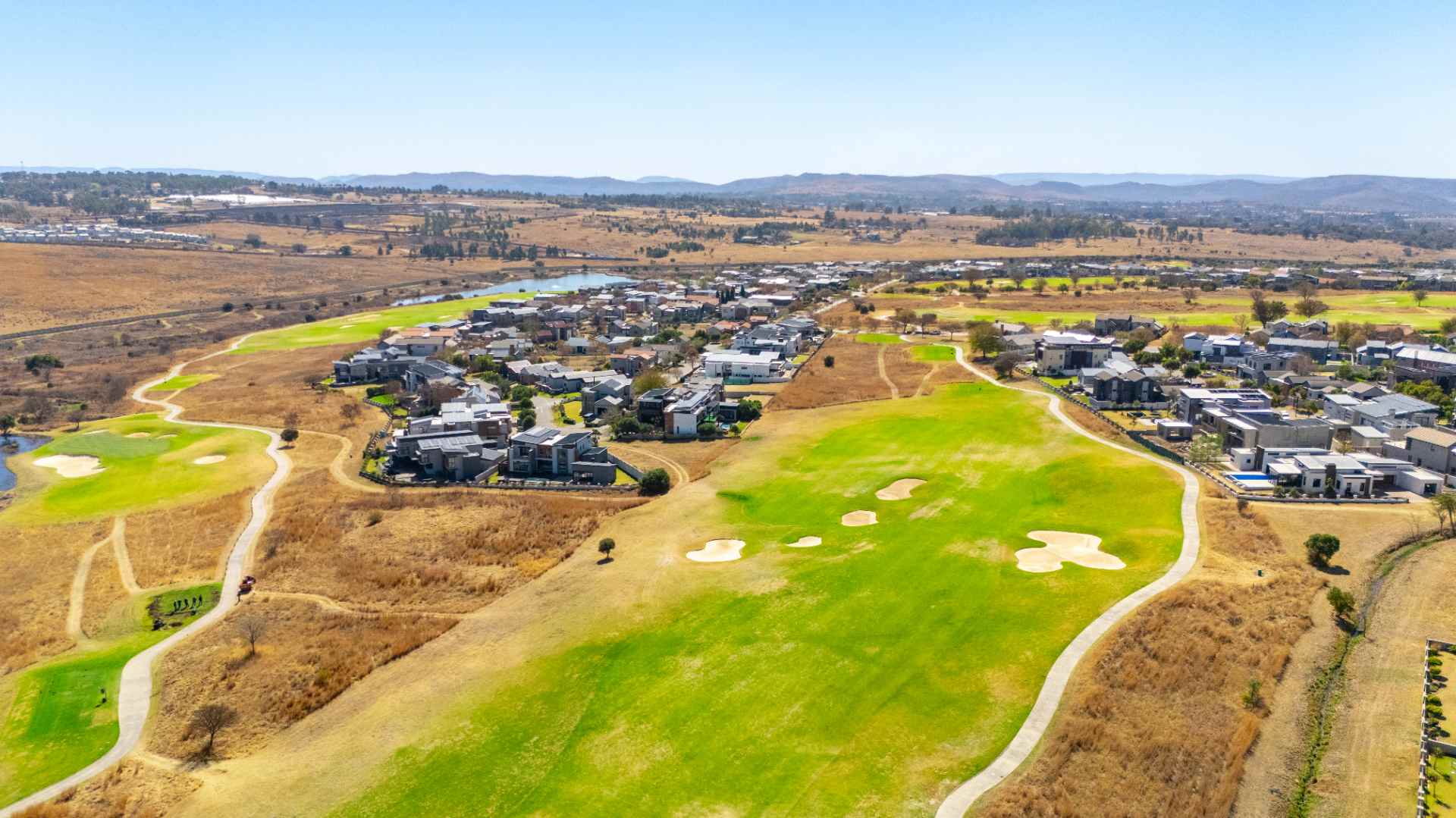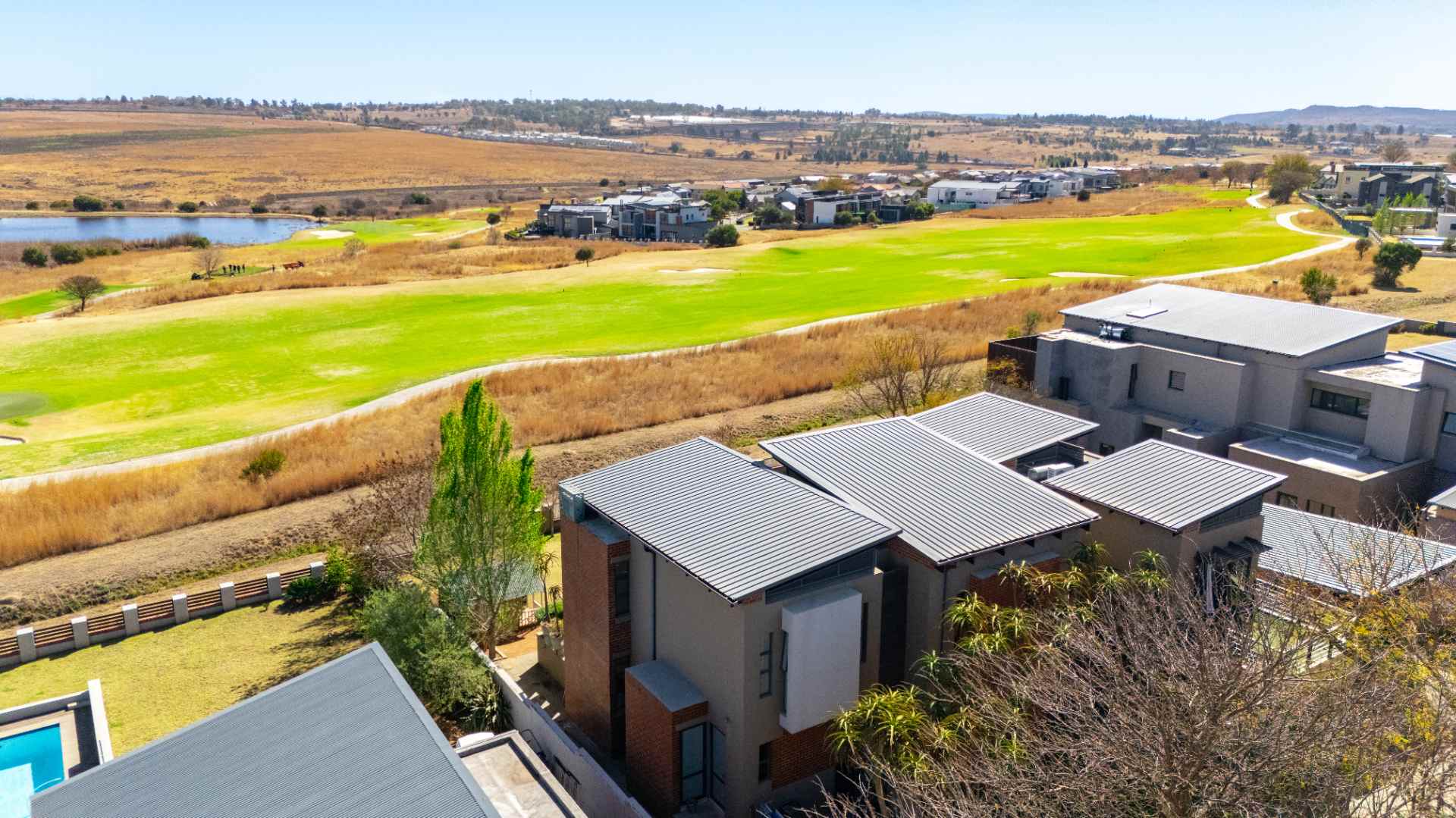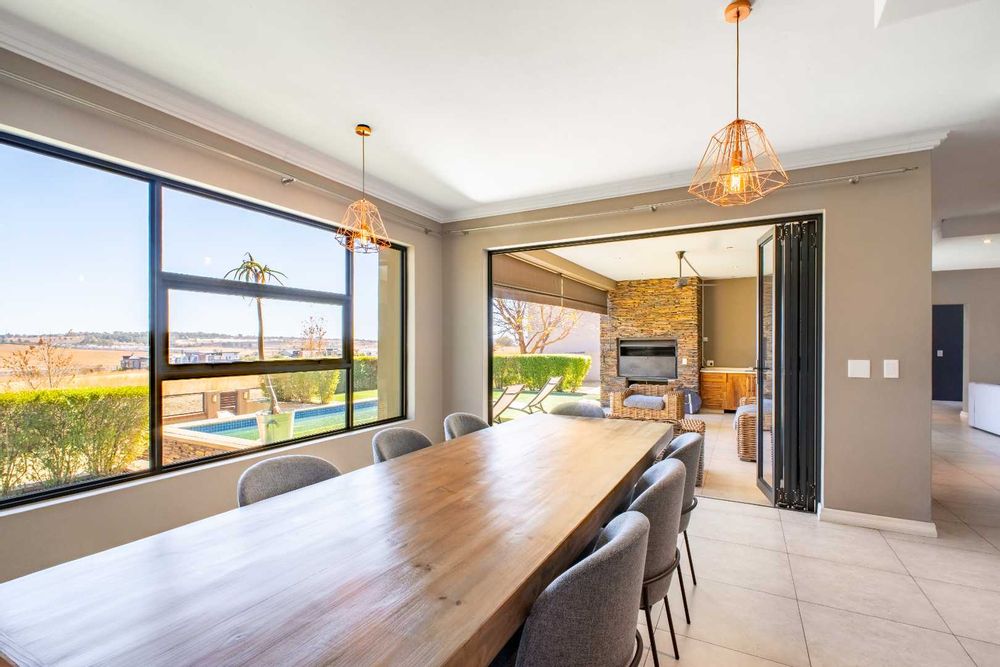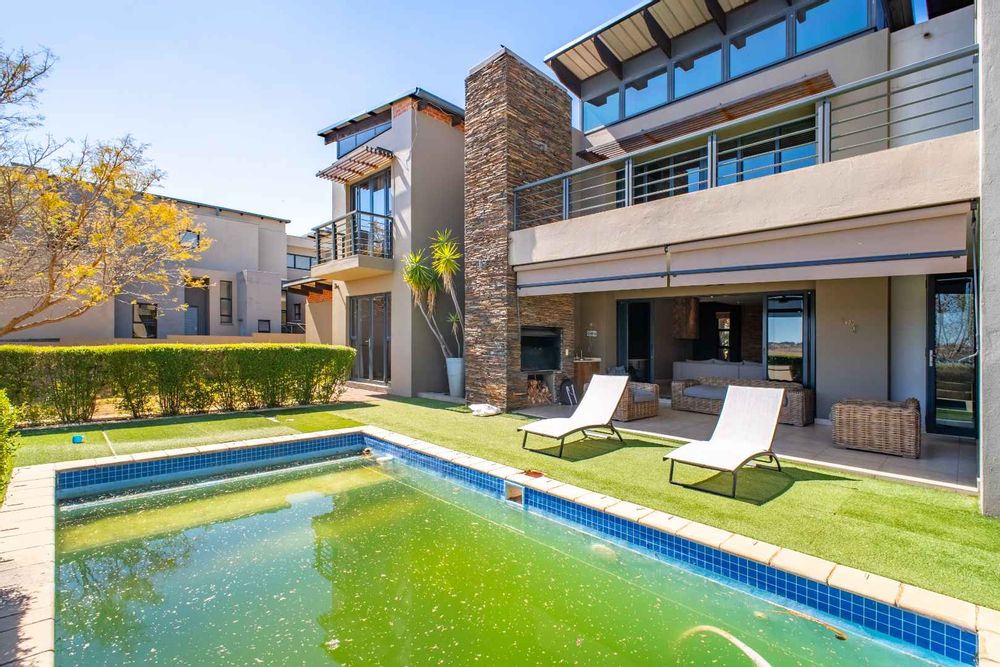 Perfectly positioned on the green belt, this striking residence offers uninterrupted views of both the golf course and a tranquil dam, creating a setting of peace and exclusivity.
