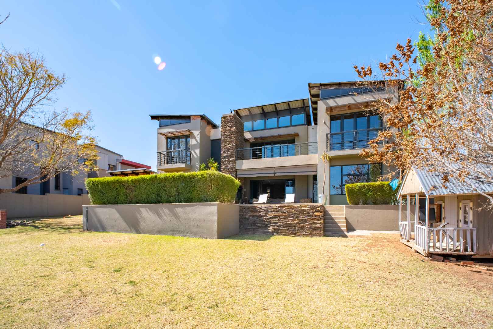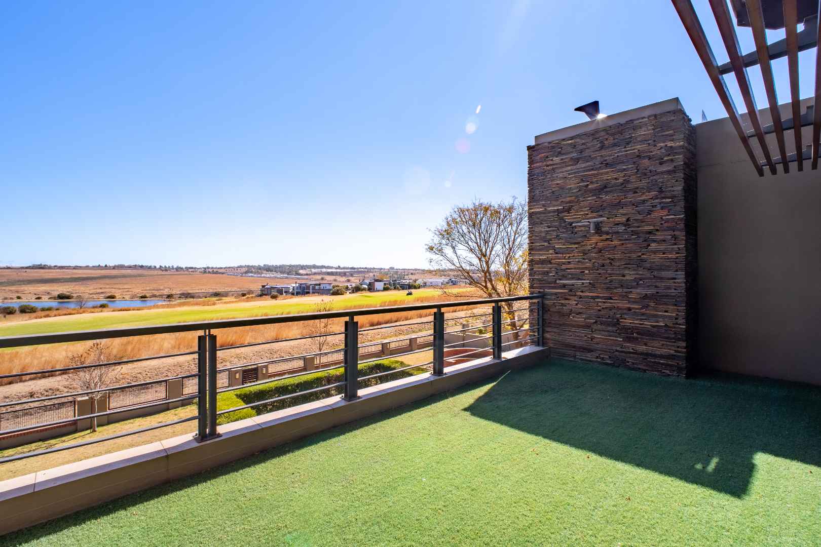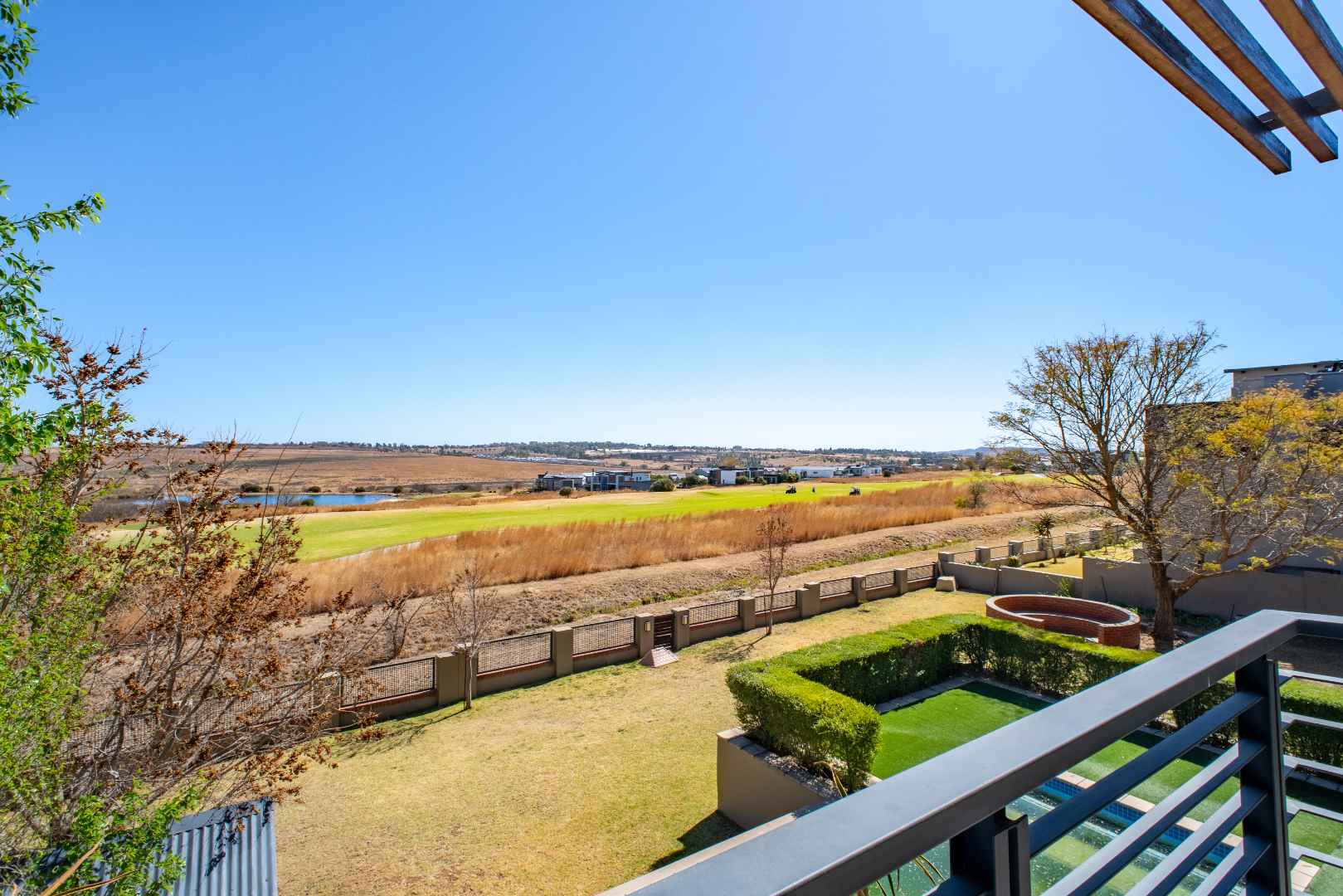 Perfectly positioned on the green belt, this striking residence offers uninterrupted views of both the golf course and a tranquil dam, creating a setting of peace and exclusivity.