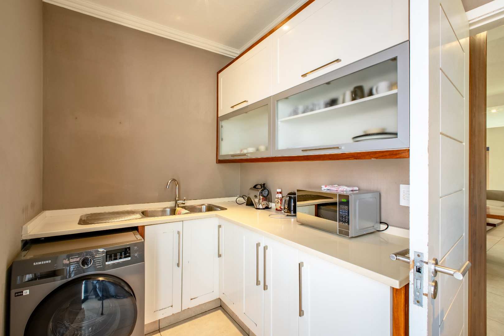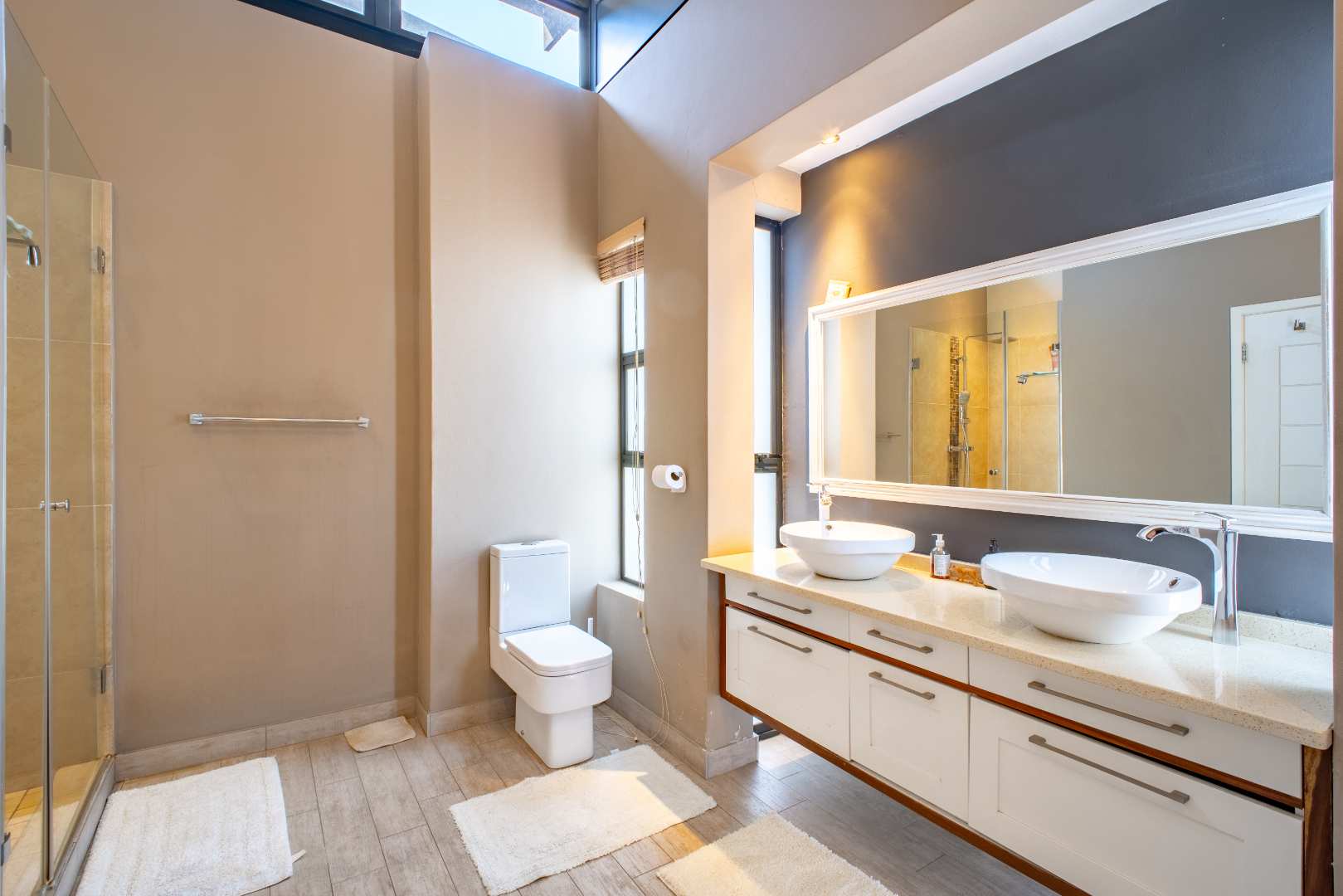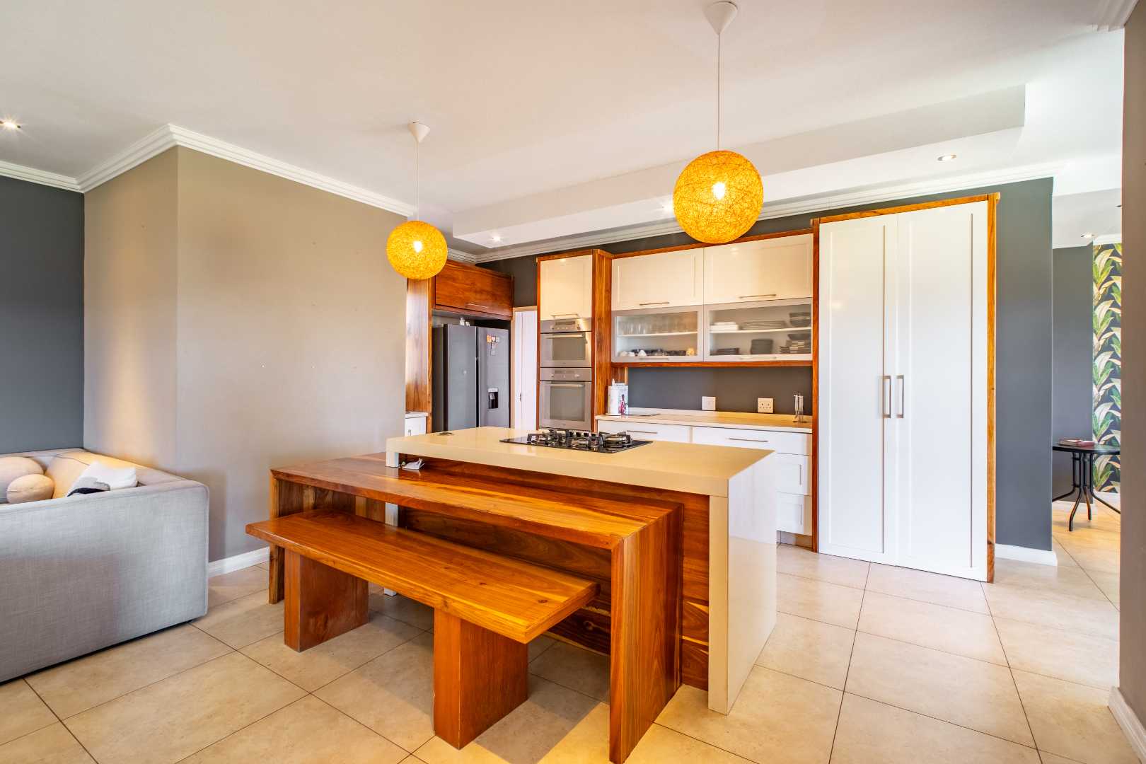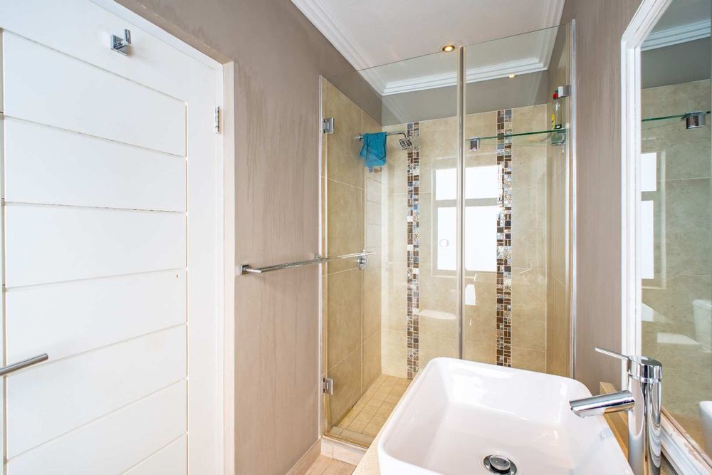 The gourmet kitchen includes a separate scullery for practicality, ensuring the heart of the home remains uncluttered. On this level, you’ll also find a private guest suite tucked away from the main living areas, complete with its own en-suite bathroom and garden access.