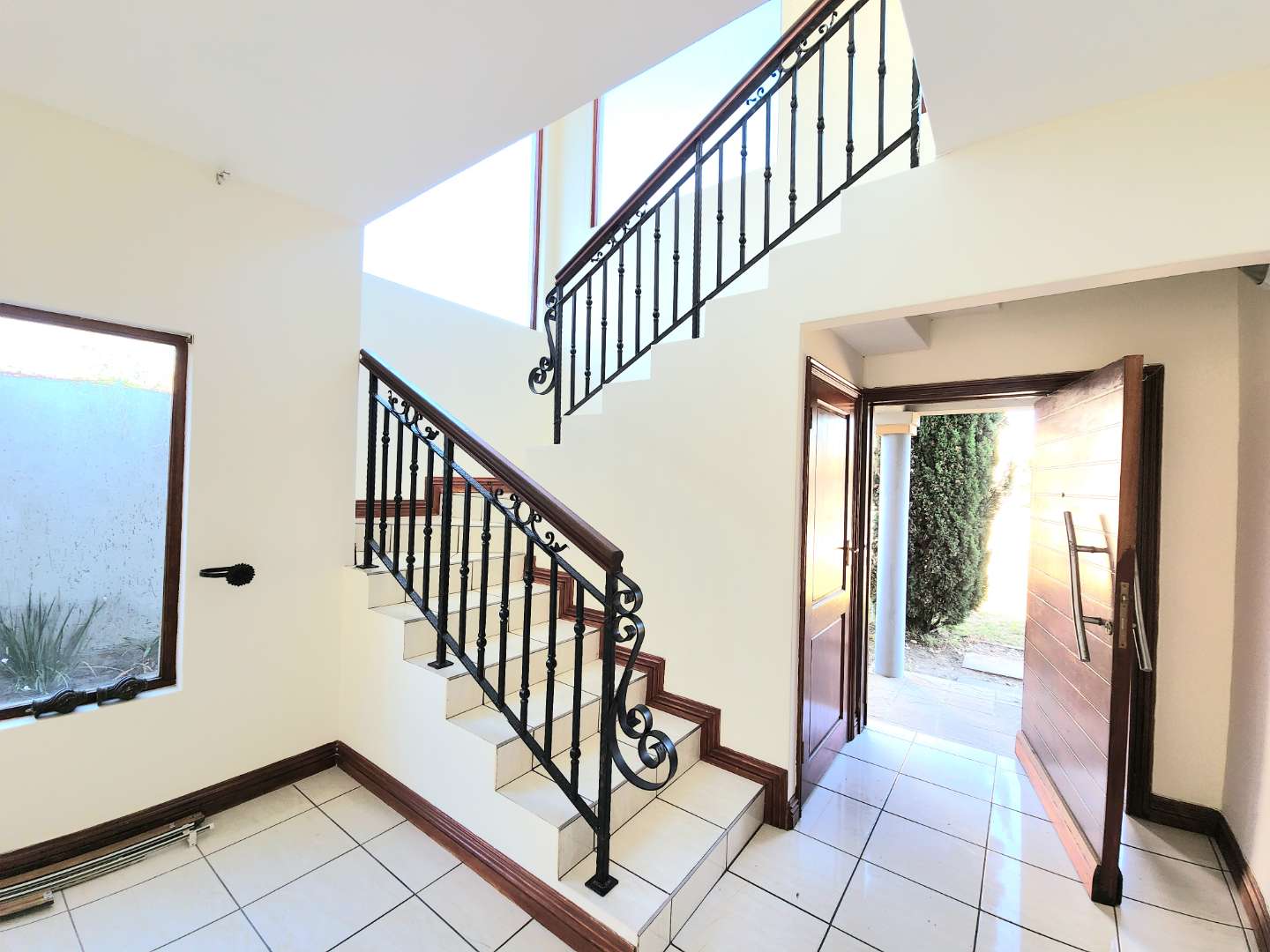Downstairs, enjoy a spacious open-plan lounge and dining area leading to a sleek kitchen with plenty of cupboards and a scullery. The flow continues to a cosy patio with built-in braai, ideal for entertaining or spending quite mornings and evenings.