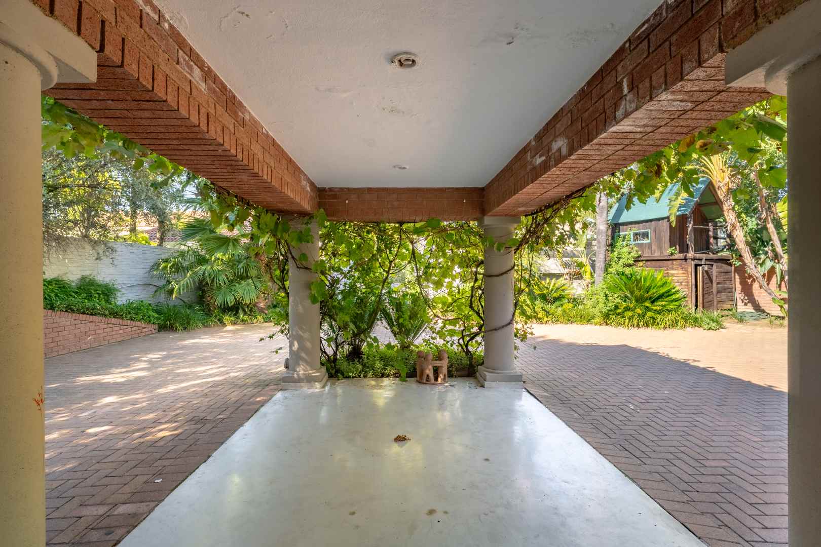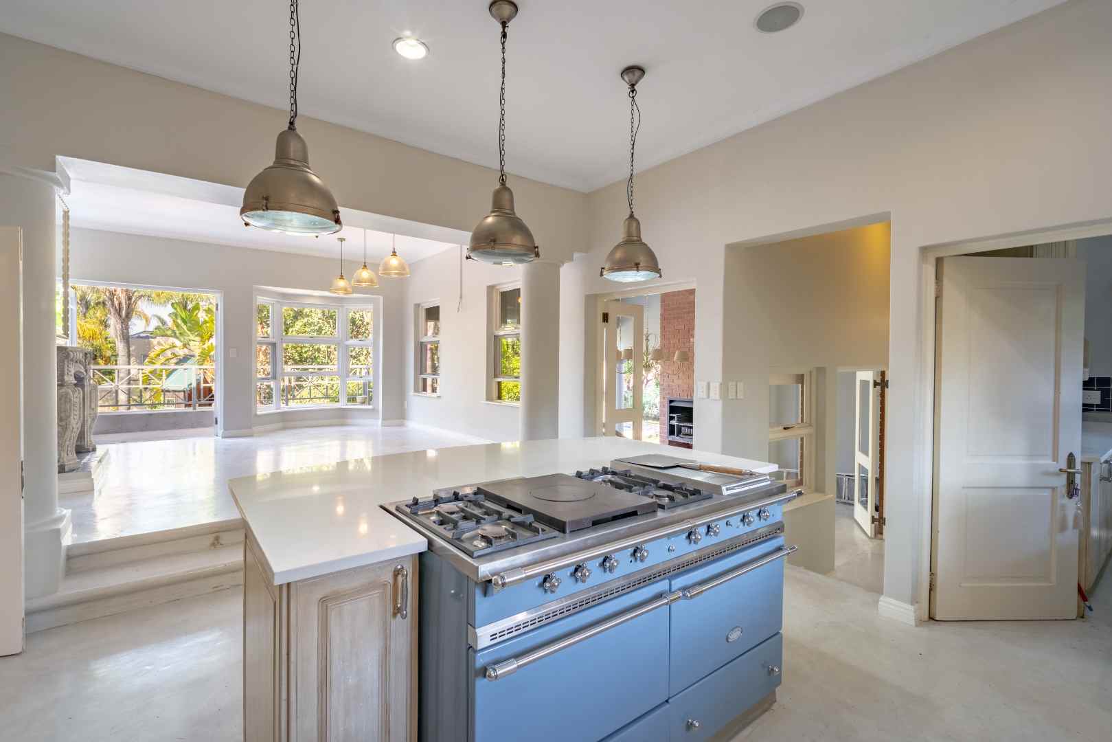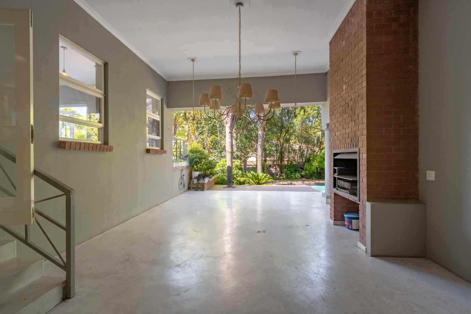 Massive Covered Patio: Features a built-in braai and multiple chandelier fixtures, creating an outdoor room for year-round hosting.