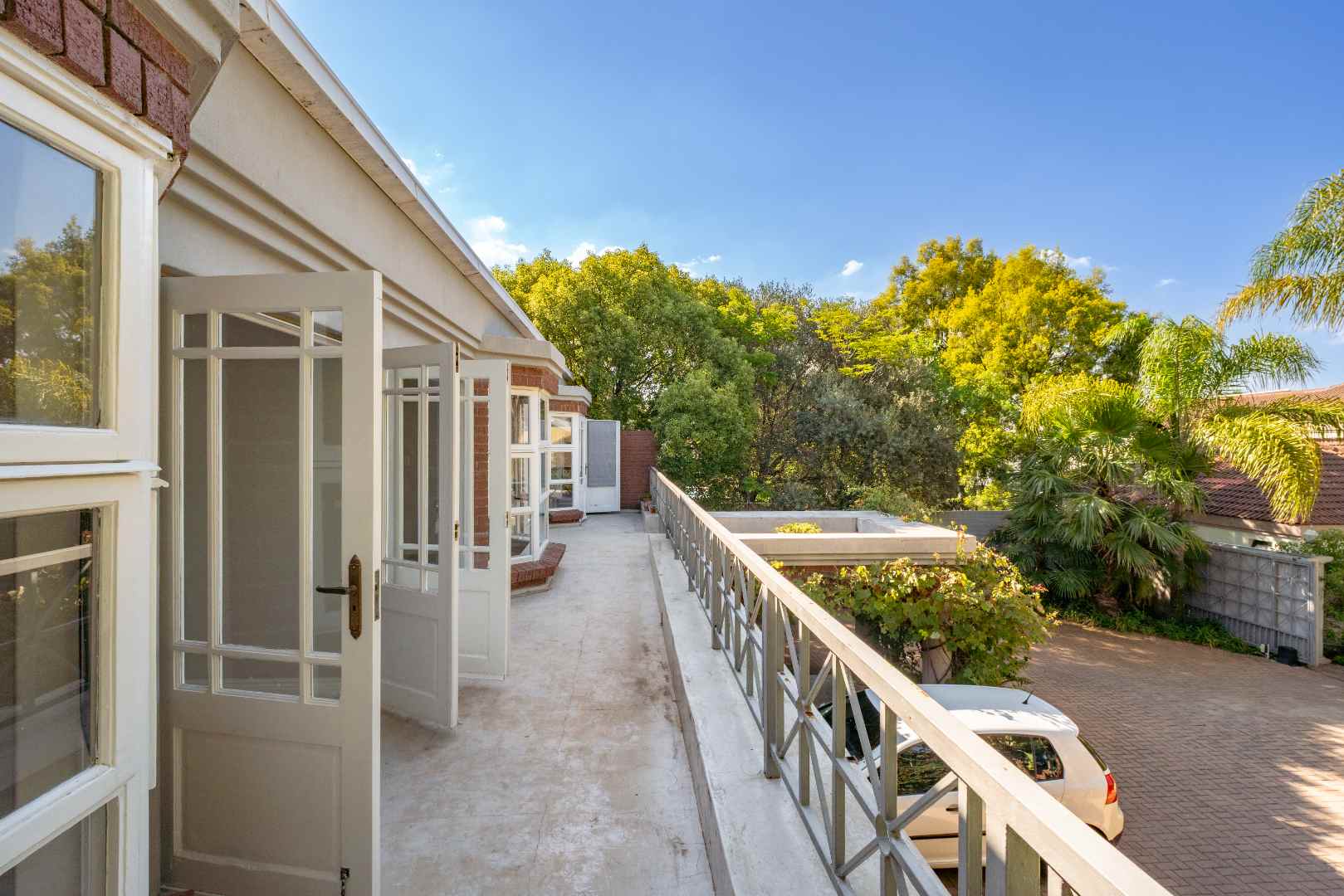 Balcony Access: Large French doors open from the living area onto a shared balcony, offering serene views of the estate.