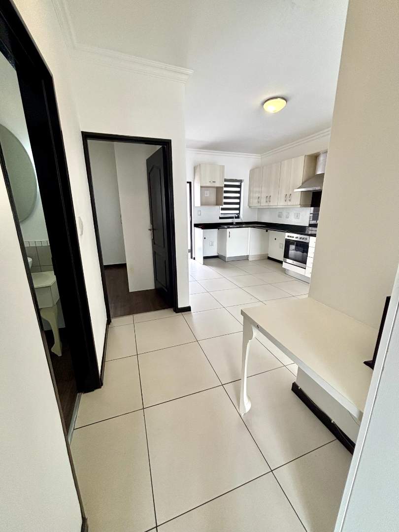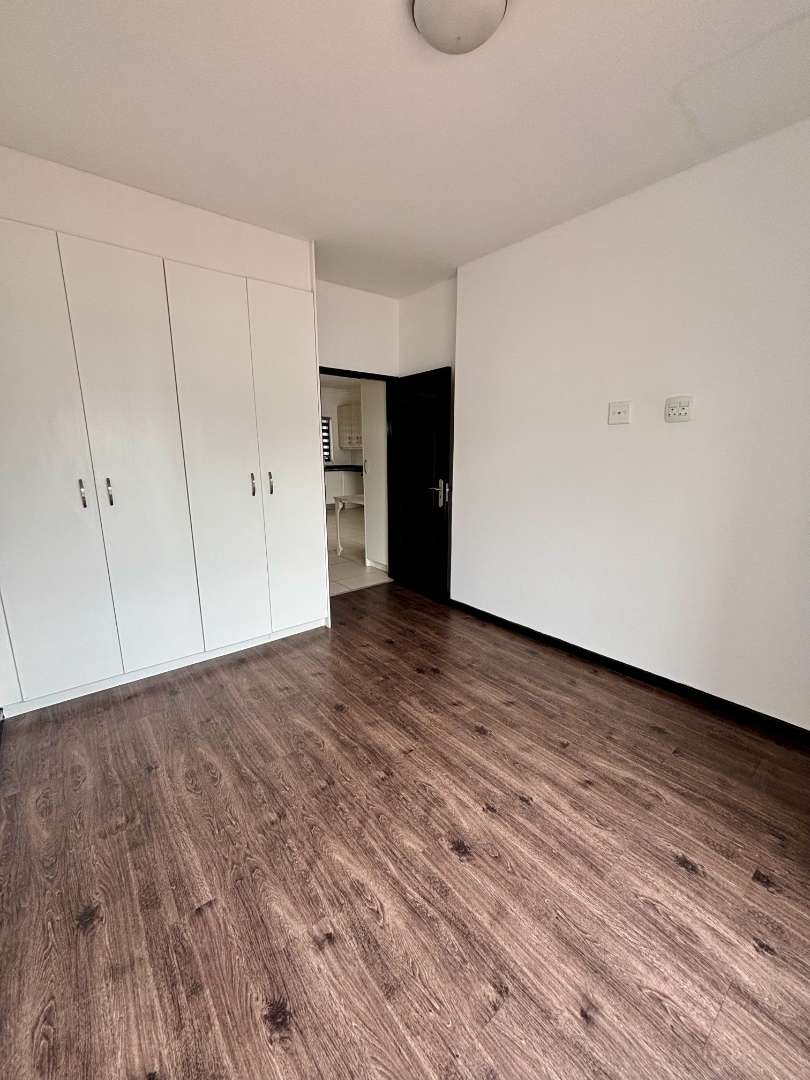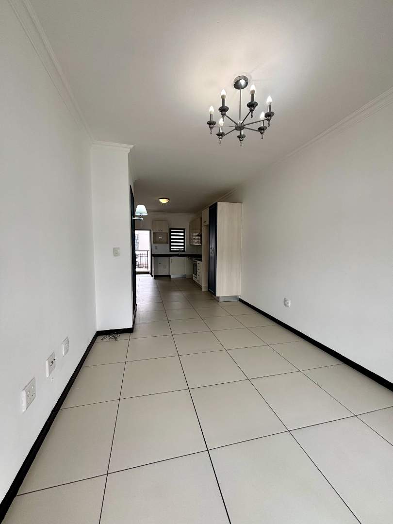 The apartment features an open-plan living and dining area flowing into a functional kitchen, creating a practical and welcoming living space. Both bedrooms are well-sized with built-in cupboards, while the bathroom is neatly finished and easily accessible.