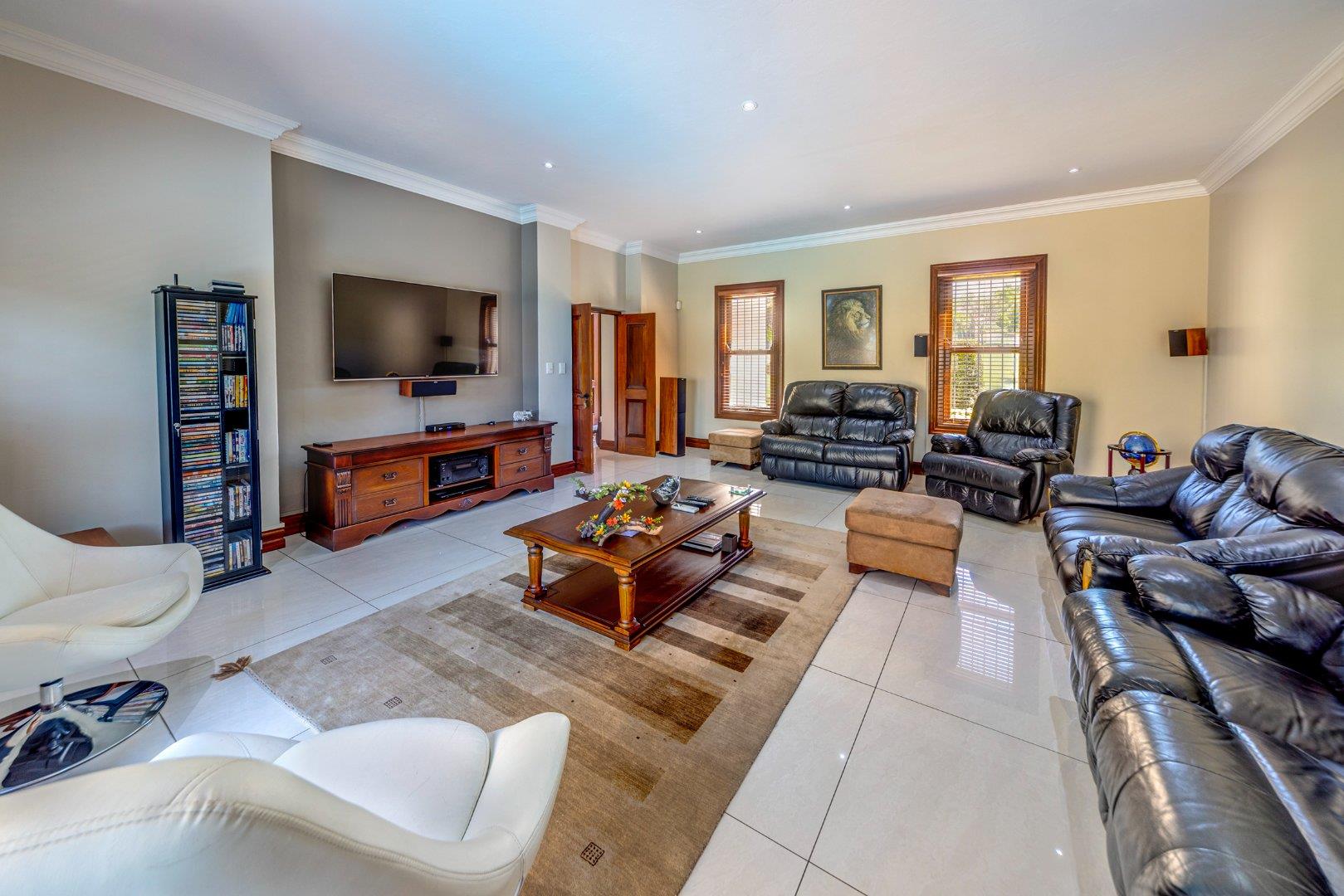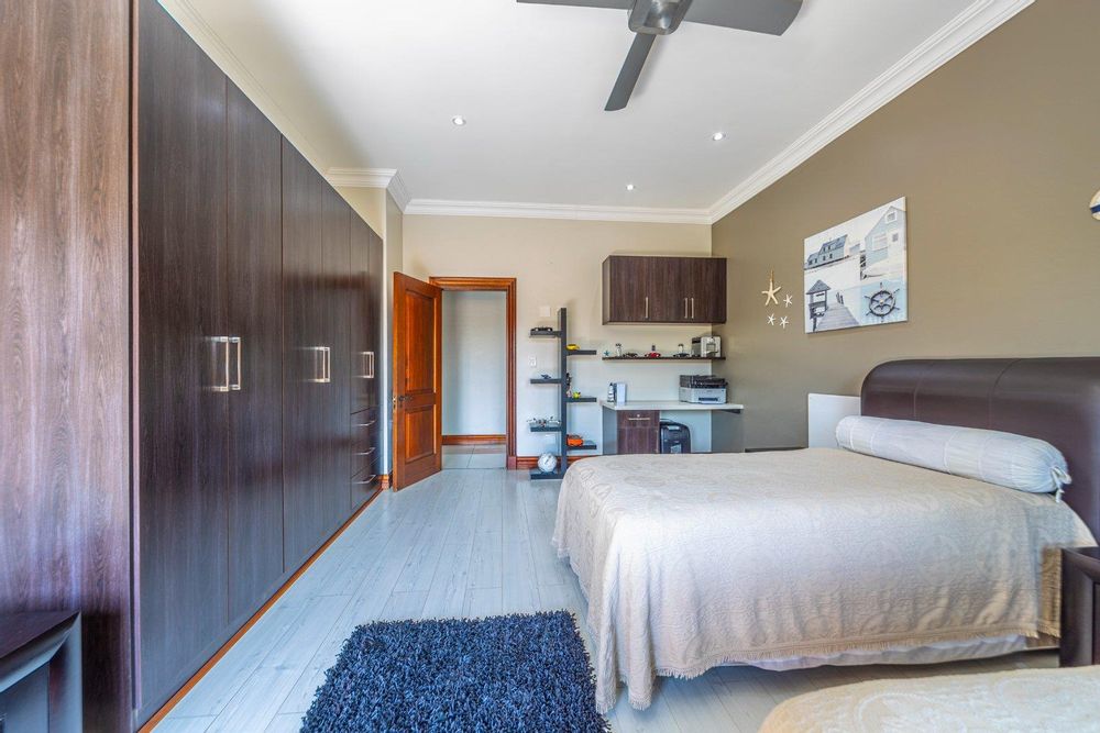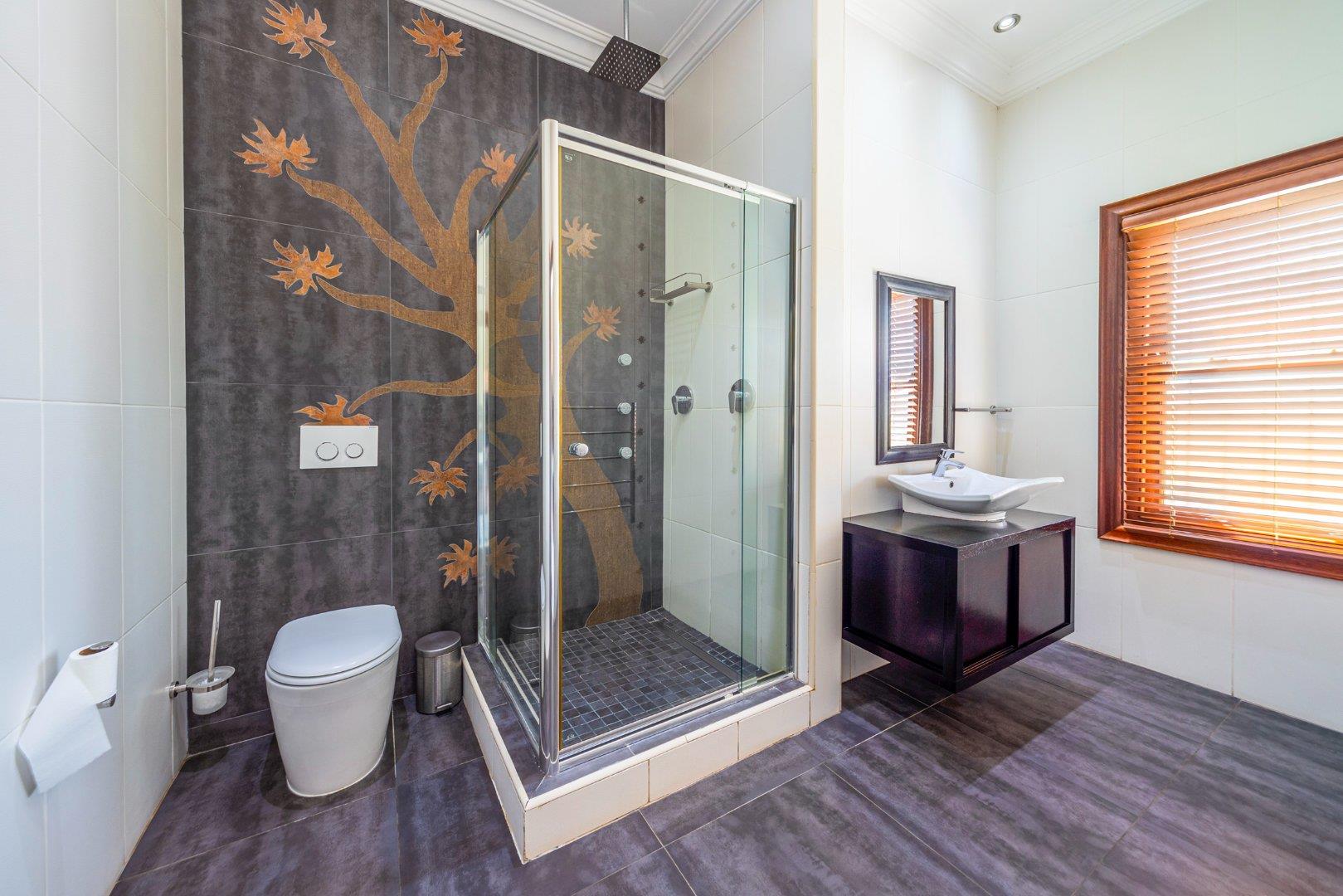 Additional comforts include four air-conditioners, a central vacuum system, and a borehole backup, ensuring that this home is as functional as it is beautiful. Its prime location in Faerie Glen provides easy access to top schools, shopping centers, and entertainment areas, making it an ideal choice for families.
