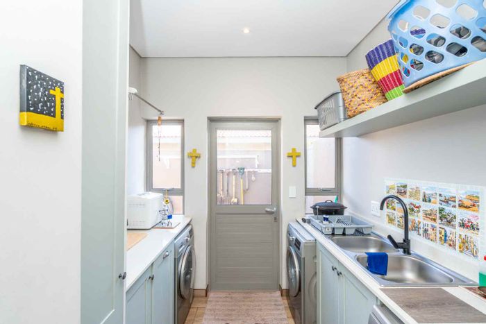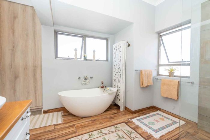 Resort-style living in Langebaan Country Estate with wildlife neighbours, panoramic lagoon and fairway views, dual-living layout, verandas with built-in braais, landscaped garden, four beds, four baths, double garage.