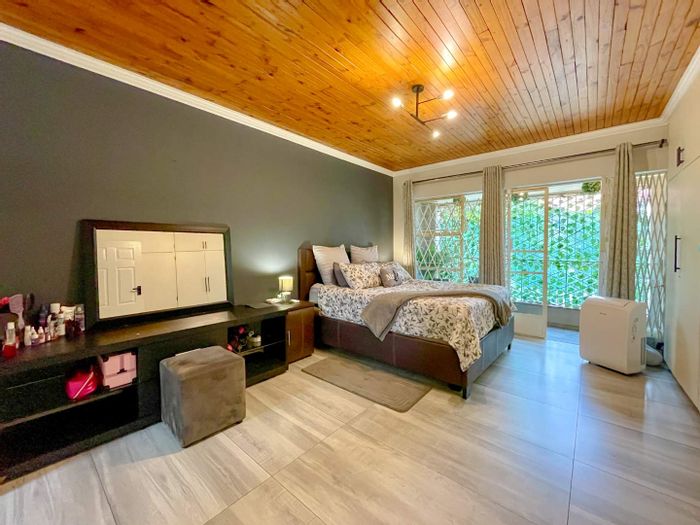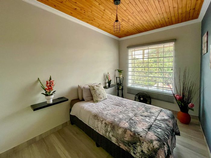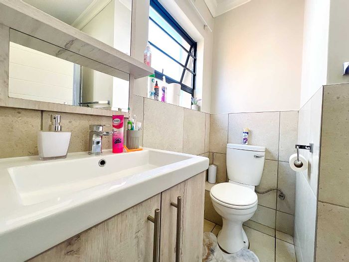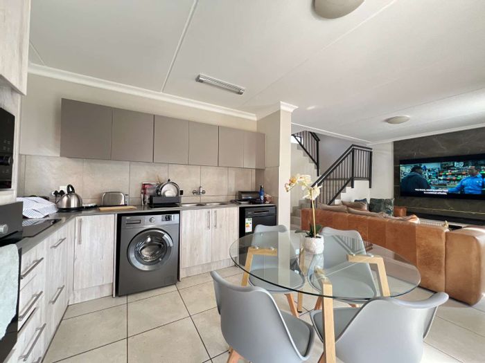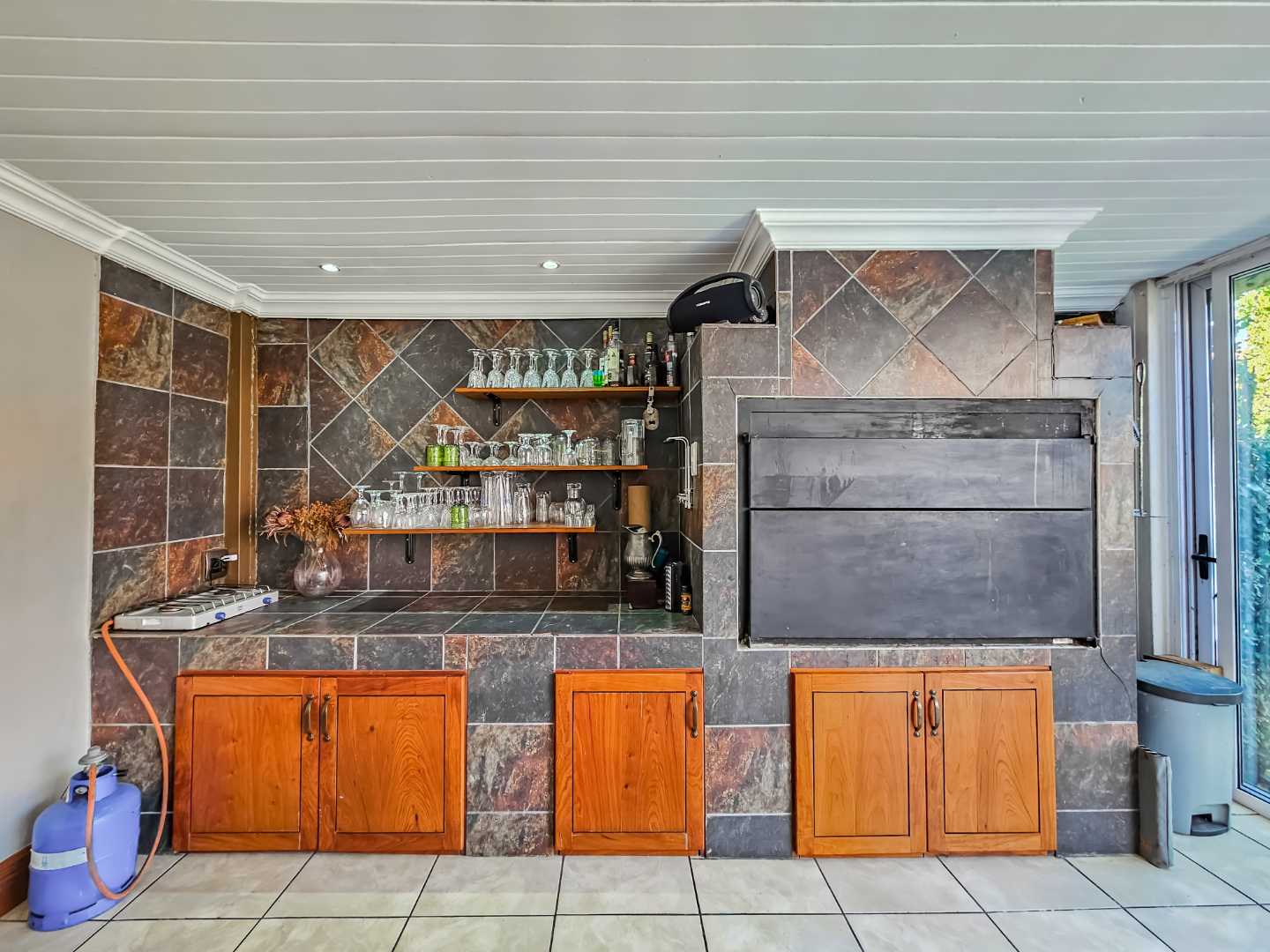 The highlight of this home is the large entertainment area, perfect for hosting gatherings and celebrations. With enough room to accommodate an 8-seater dining table, lounge area, offering a built-in braai and bar, this space is designed for unforgettable moments with friends and family. What's more, the entertainment area opens up completely to the private garden and splash pool, creating a seamless indoor-outdoor living experience.