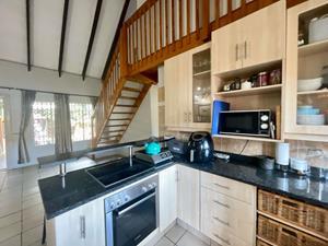 The home features two spacious bedrooms and one well-appointed bathroom. The heart of the home is the open-plan kitchen with built-in cupboards, seamlessly merging into a cozy lounge area, creating a welcoming atmosphere.