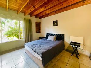 This pet-friendly property is equipped with essential security features like burglar bars, ensuring peace of mind. It also includes a single garage and a beautifully maintained garden, perfect for relaxation and outdoor enjoyment.