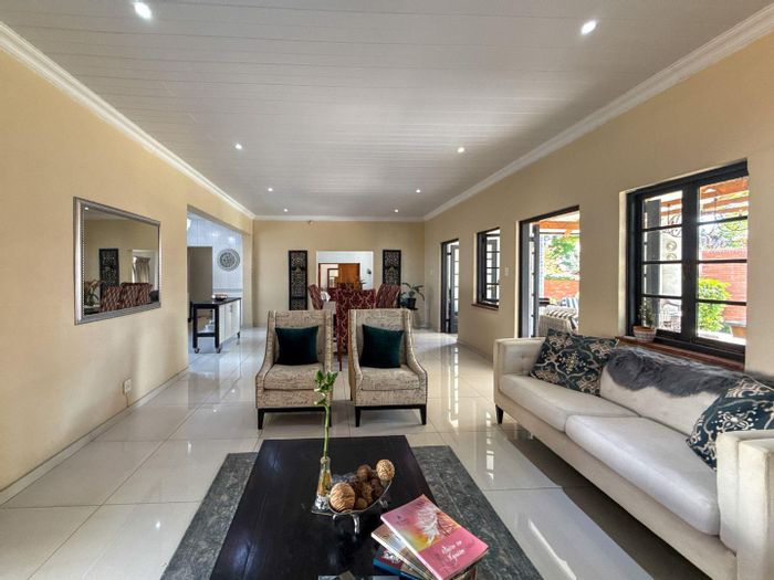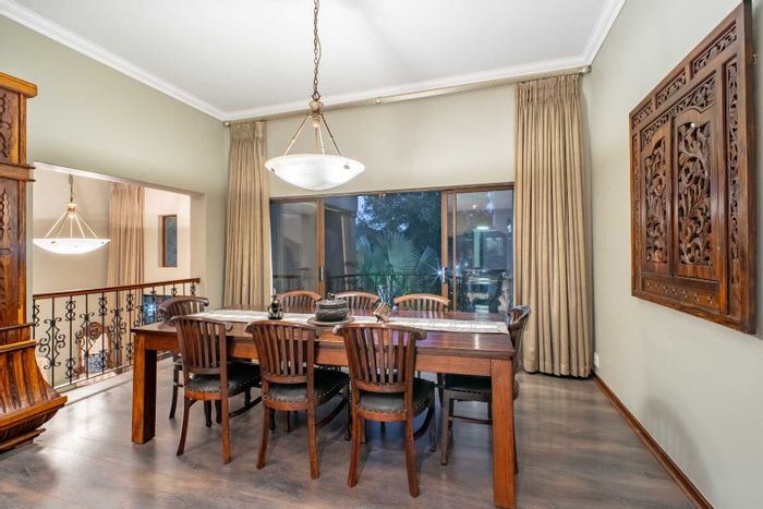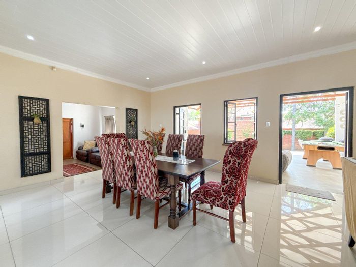 Entertain effortlessly on Waterkloof Ridge with sunlit, open-plan living flowing to a covered patio, gas braai and pool with city-skyline views; includes six bedrooms, 5.5 baths and four garages.