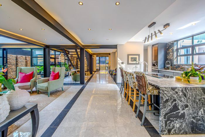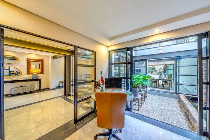 Entertain and retreat in exclusive Waterkloof Palms, Pretoria — serene bird-song mornings, panoramic views and a private cinema room; four bedrooms, four bathrooms and two garages.
