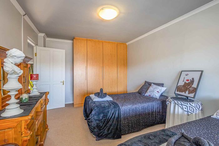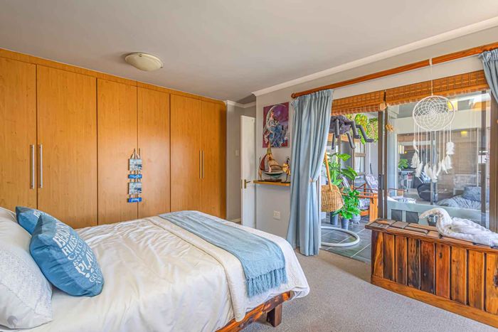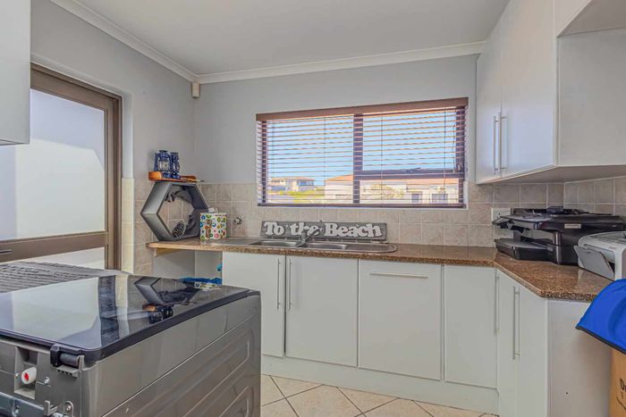 Refined estate living in Le Juille precinct, Langebaan Country Estate — entertain from open-plan living onto covered braai with private greenbelt outlook and no rear neighbour; 3 beds, 2.5 baths.