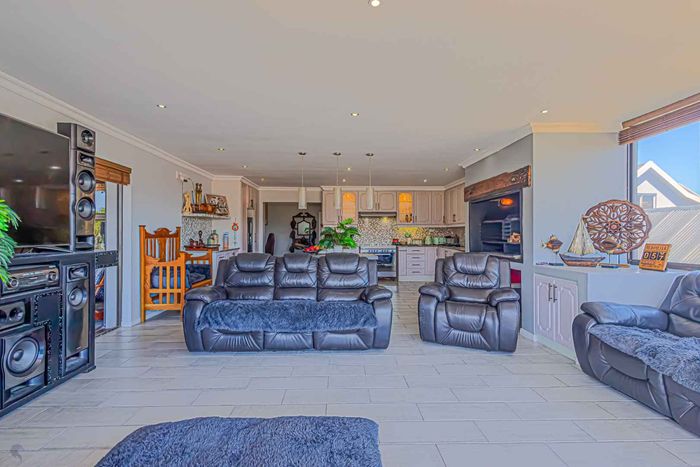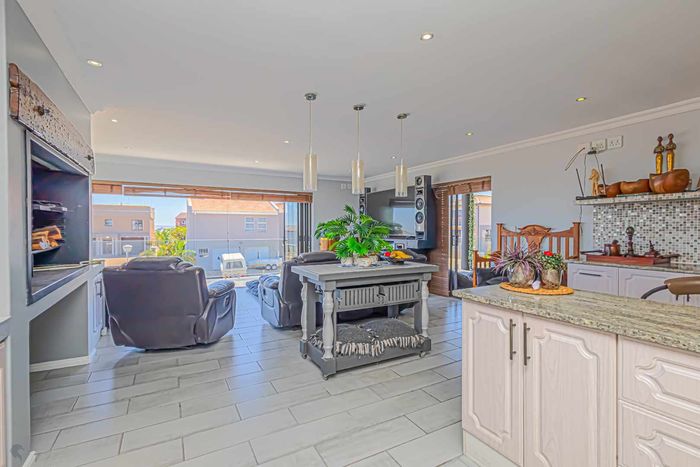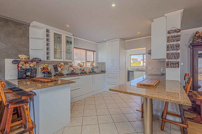 Coastal entertaining and relaxed lagoon living in Langebaan Country Estate, with panoramic lagoon views, enclosed entertainment veranda with built-in braai, quartz kitchen, landscaped irrigated garden and double garage.
