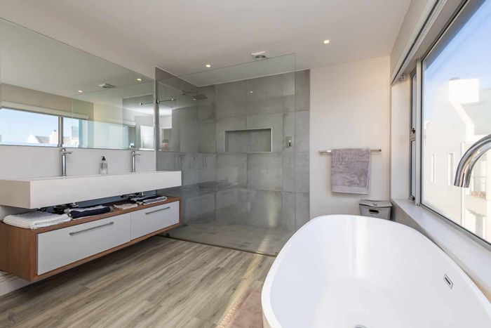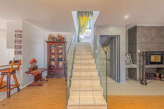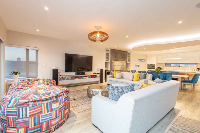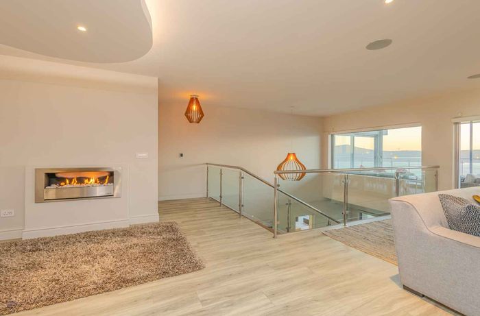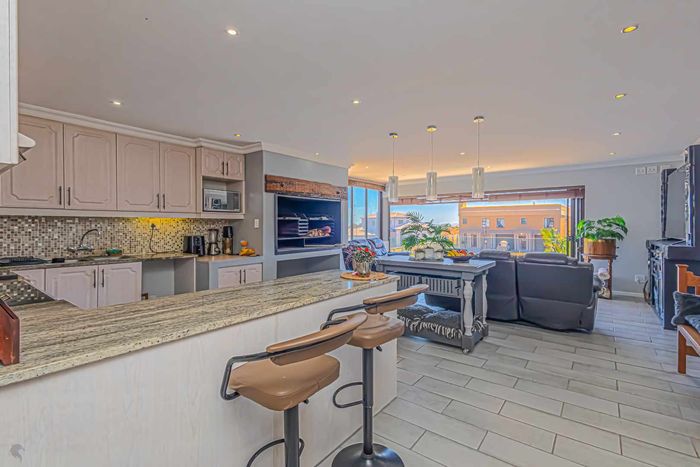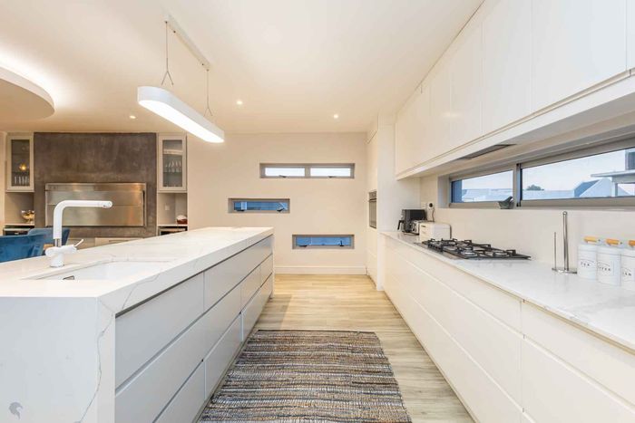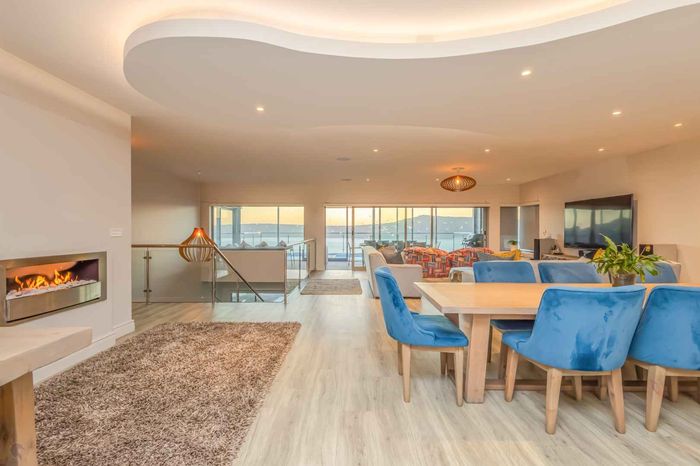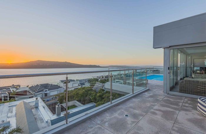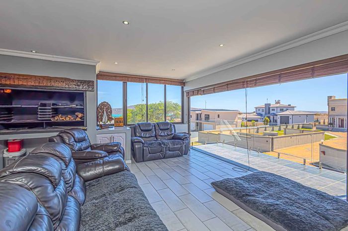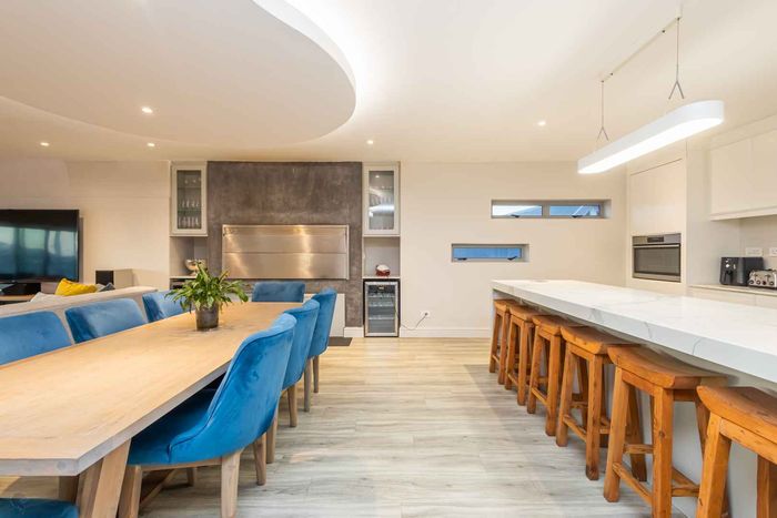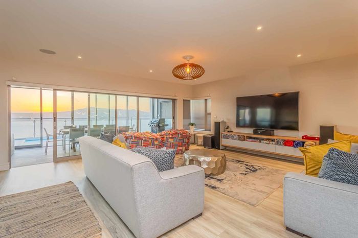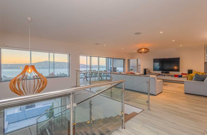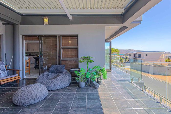 Elevated West Coast living in Langebaan Country Estate, with lagoon and sunset views — open-plan entertaining, wind-protected braai terrace and balcony. Four bedrooms, three bathrooms, three garages.