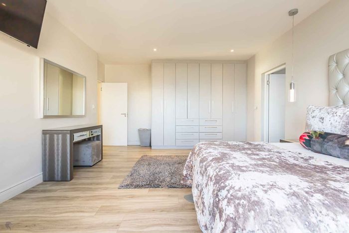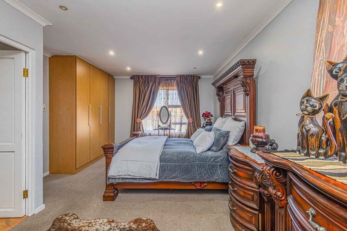 Six bedrooms, 6.5 bathrooms, 750 m² floor size, 832 m² land size, four garages, off-grid home in Myburgh Park.