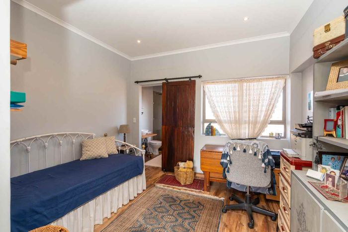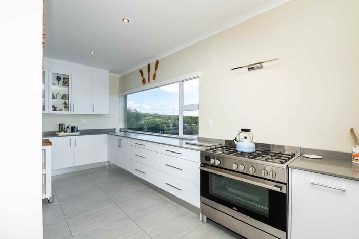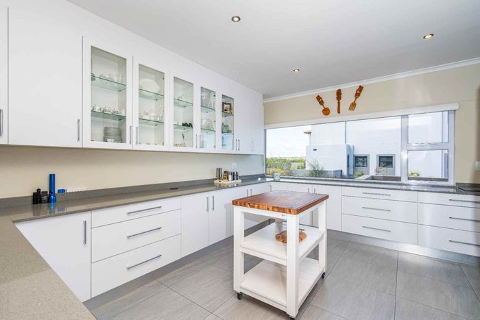 Coastal entertaining and relaxed lagoon living in Langebaan Country Estate, with panoramic lagoon views, enclosed entertainment veranda with built-in braai, quartz kitchen, landscaped irrigated garden and double garage.