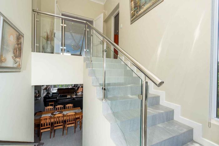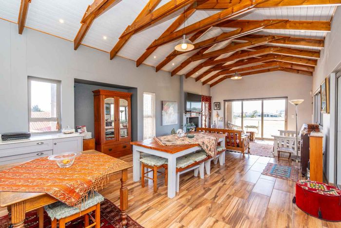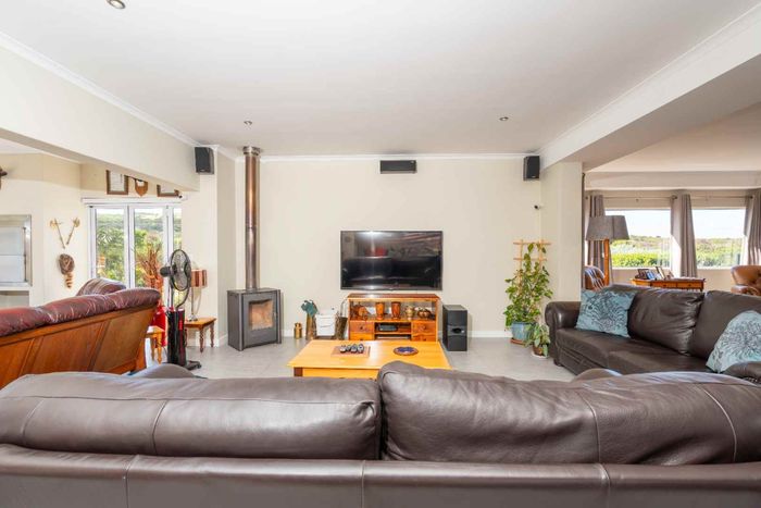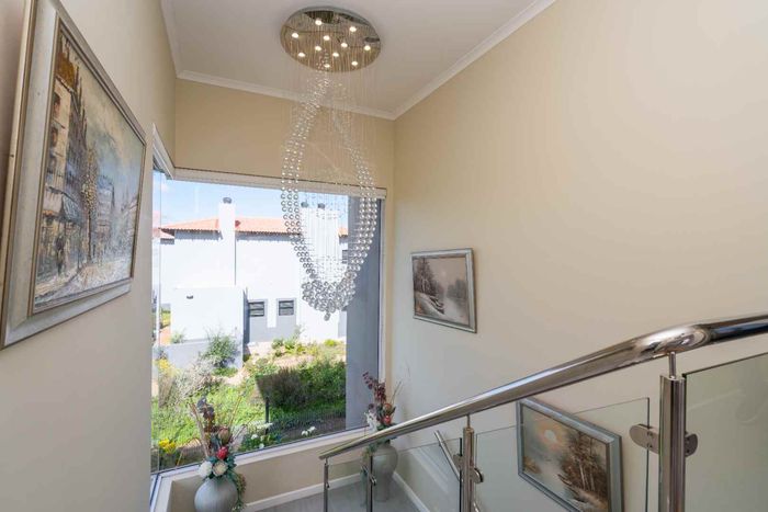 Elevated West Coast living in Langebaan Country Estate, with lagoon and sunset views — open-plan entertaining, wind-protected braai terrace and balcony. Four bedrooms, three bathrooms, three garages.
