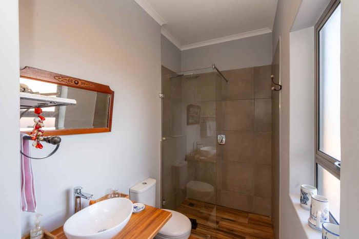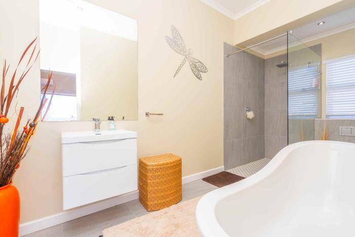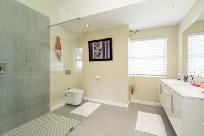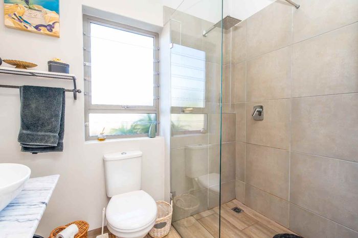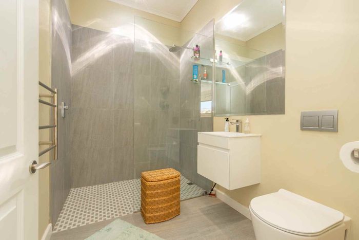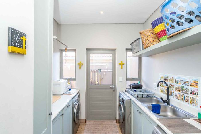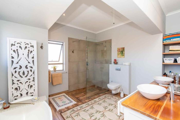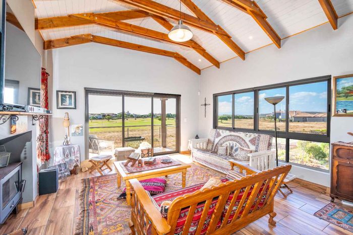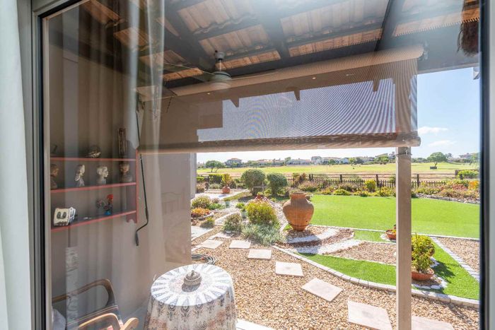 Embrace relaxed country-club living in Langebaan Country Estate, with lagoon access and golf course; this modern 3-bed home features a covered patio with built-in braai and private outdoor shower.