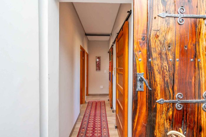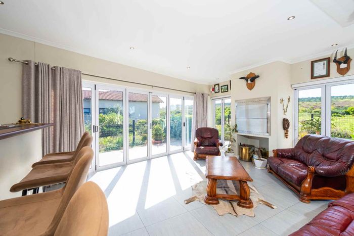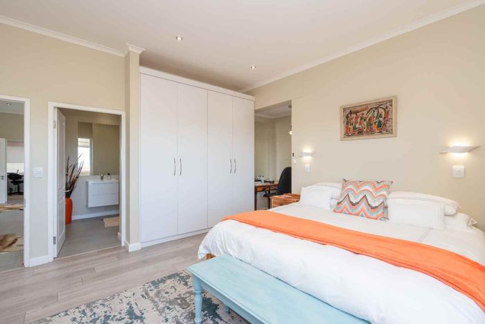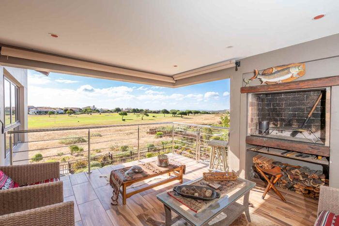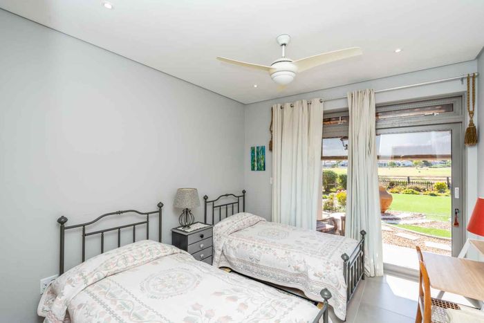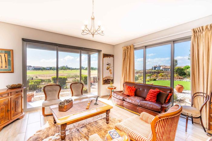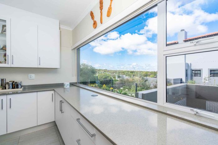 Refined estate living in Le Juille precinct, Langebaan Country Estate — entertain from open-plan living onto covered braai with private greenbelt outlook and no rear neighbour; 3 beds, 2.5 baths.