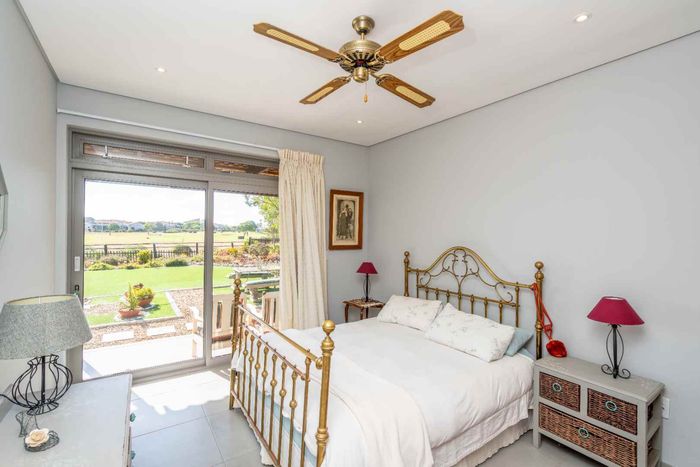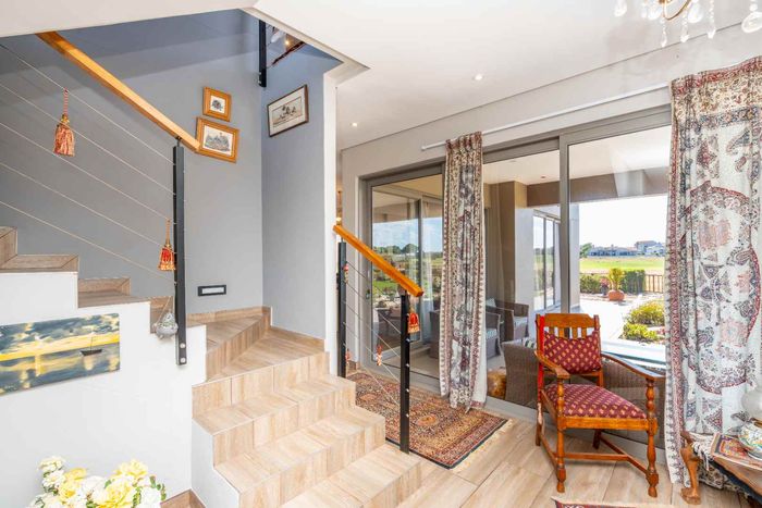 Resort-style living in Langebaan Country Estate with wildlife neighbours, panoramic lagoon and fairway views, dual-living layout, verandas with built-in braais, landscaped garden, four beds, four baths, double garage.