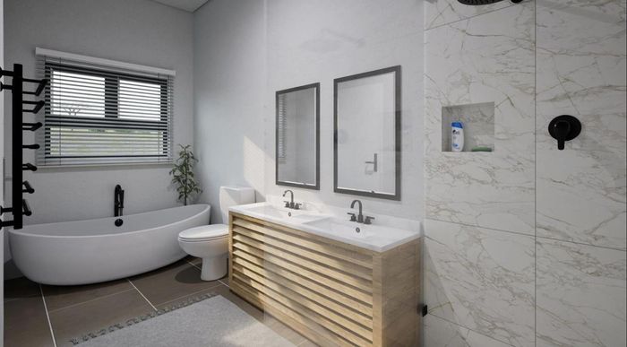 Two-bedroom, 2.5-bathroom home in Langebaan Country Estate; 236 m² floor size on 703 m² land with double garage.