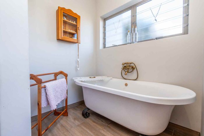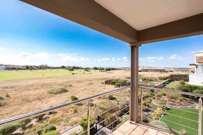 Resort-style living in Langebaan Country Estate with golf, trails and 24-hour security; private greenbelt views, pool and expansive covered braai patio. Four bedrooms, 3.5 baths, oversized double garage.