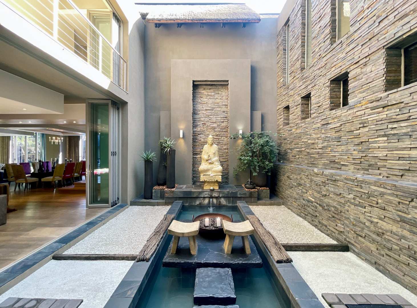 Designed for relaxation and reflection, the courtyard beckons you to meditate and unwind, while the living areas are tastefully furnished with custom pieces, exuding sophistication. The bar area is ideal for entertaining guests, and the well-appointed kitchen boasts Miele appliances and a convenient scullery.