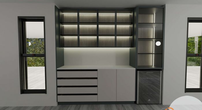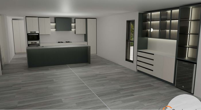 The home’s centerpiece is a double-volume open-plan living area, seamlessly connecting indoor and outdoor spaces. Expansive tinted glass sliding doors invite natural light while offering privacy and panoramic views of the golf course. An automated blind system ensures both shade and discretion when needed.