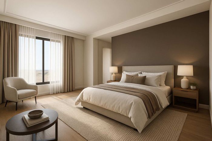 The master suite is a sanctuary of indulgence, boasting a double-volume ceiling, open-plan layout, and spa-inspired amenities, including dual vanities, a freestanding bathtub, his-and-hers showers, and a walk-in closet designed to impress.