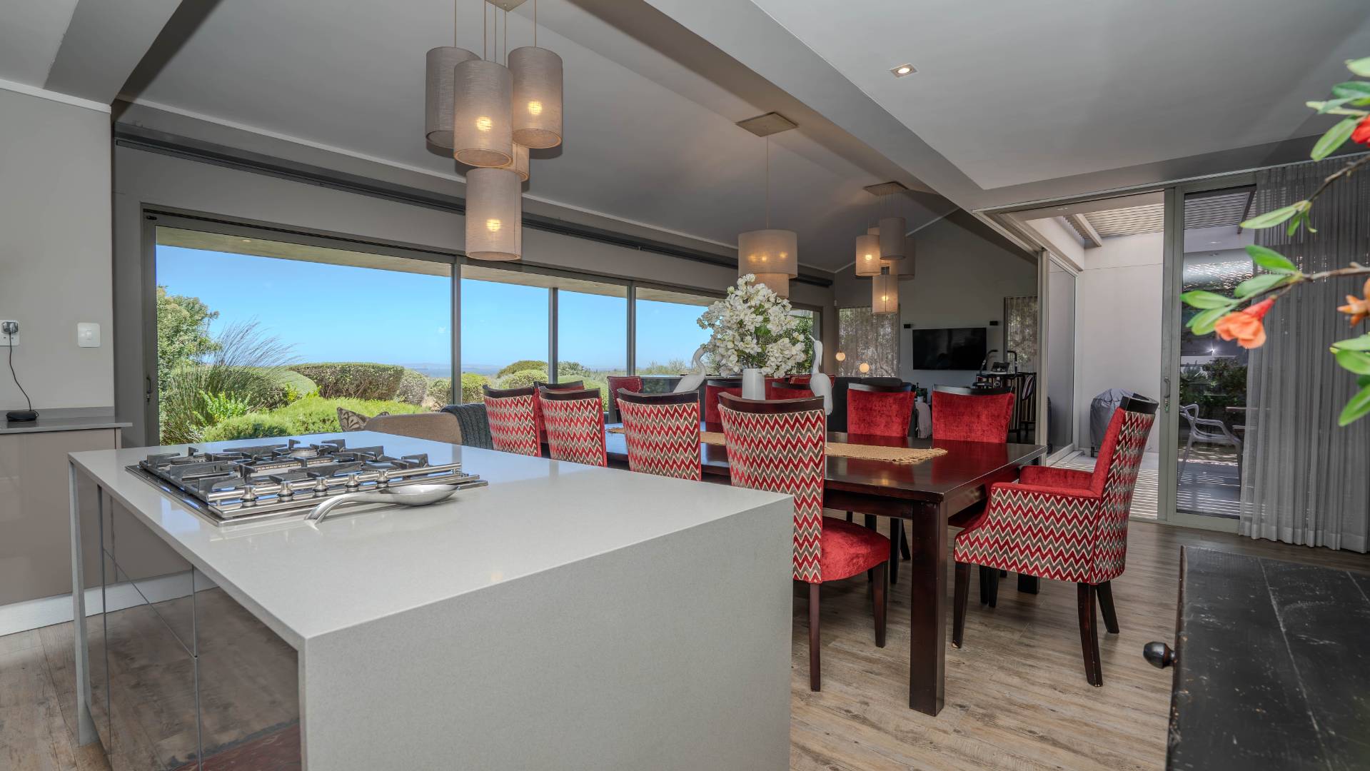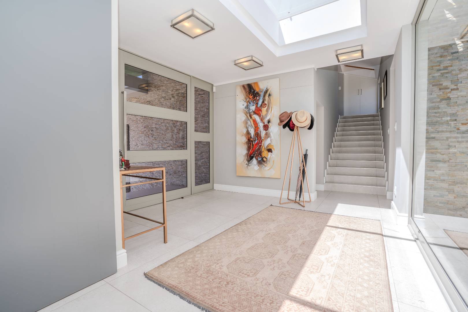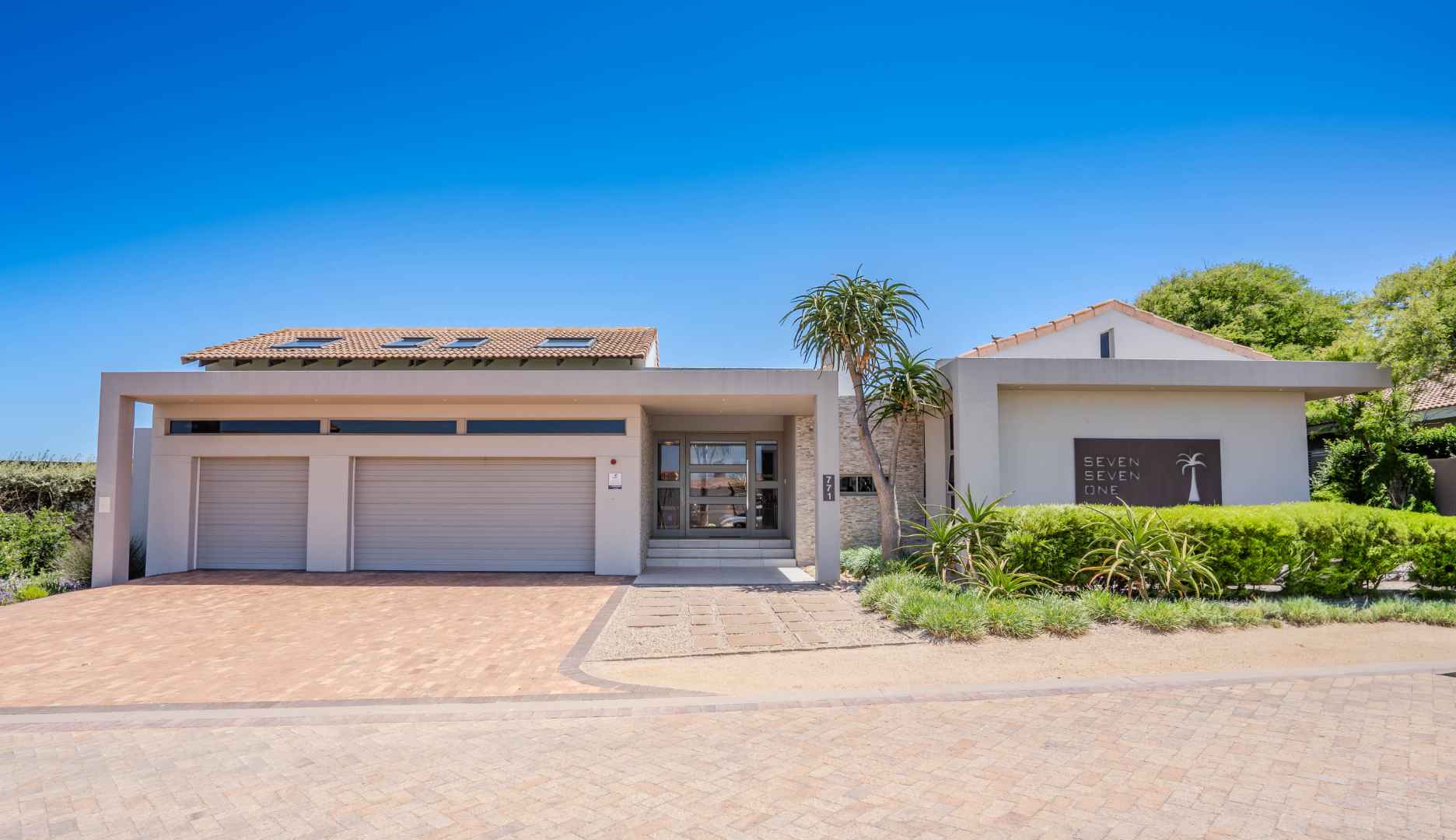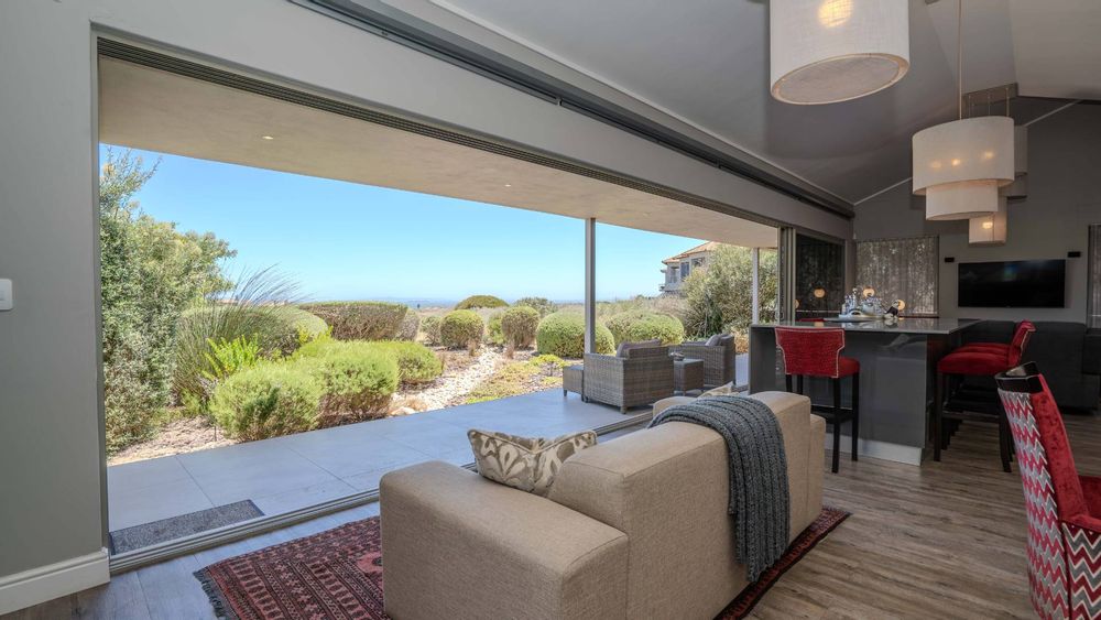 Upon arrival, you'll be welcomed by a striking foyer featuring a glass atrium that showcases a curated indigenous garden, highlighting native South African flora suited to the area’s climate.