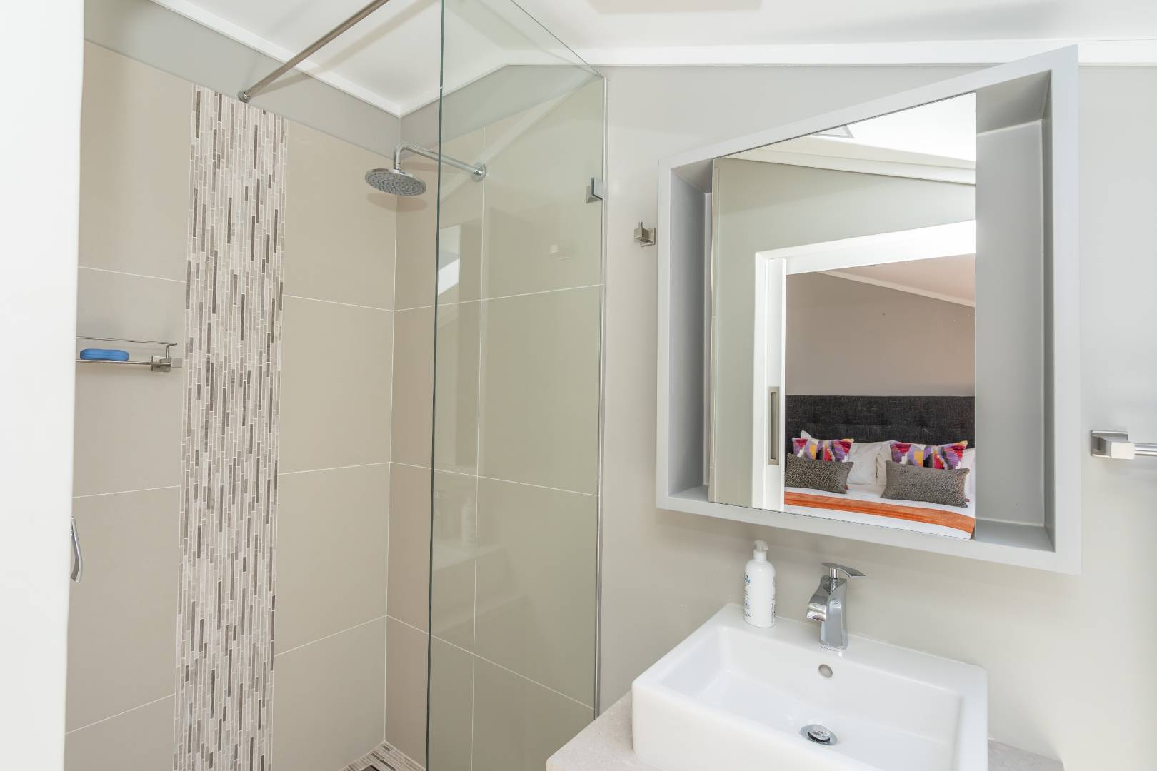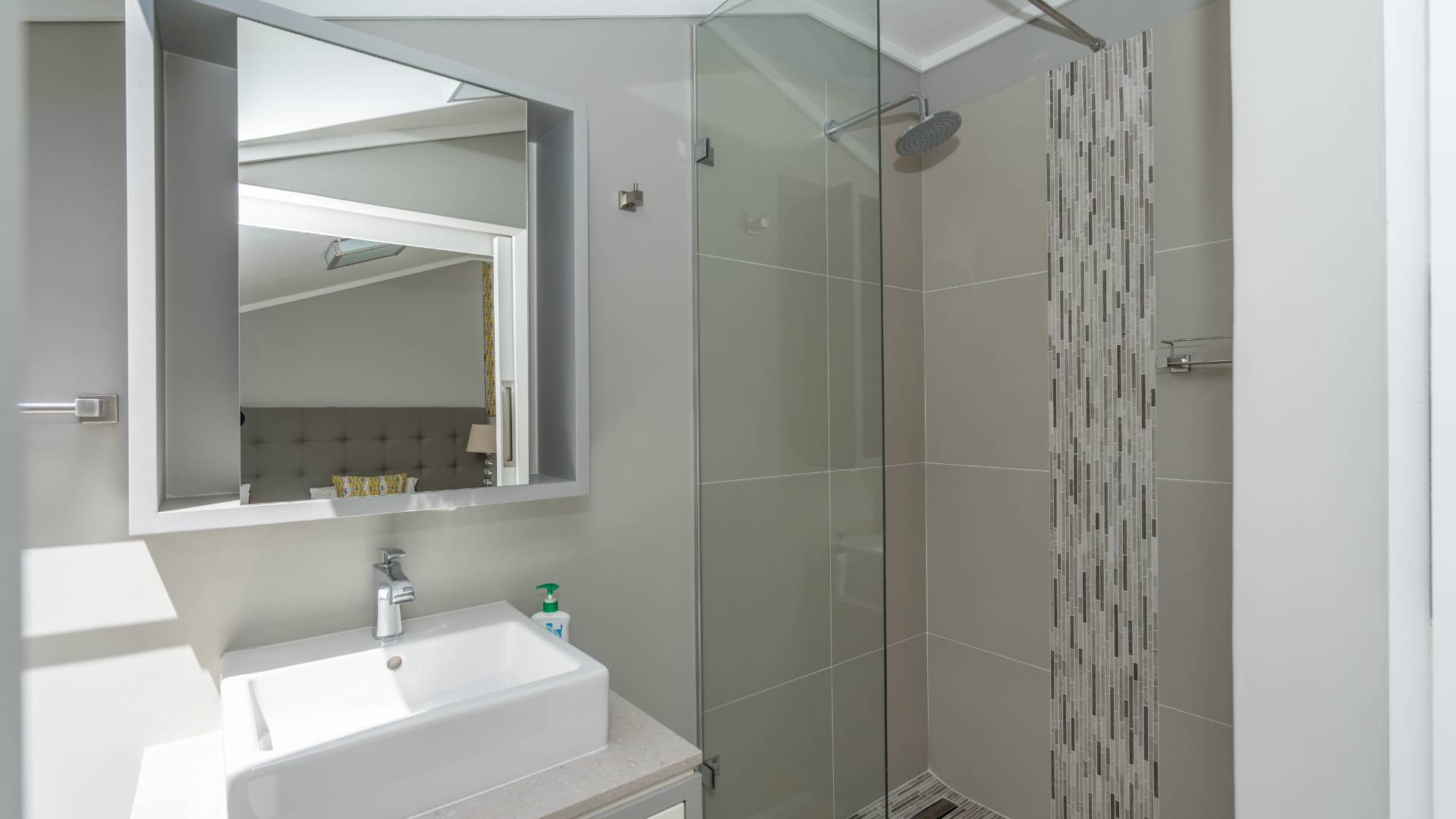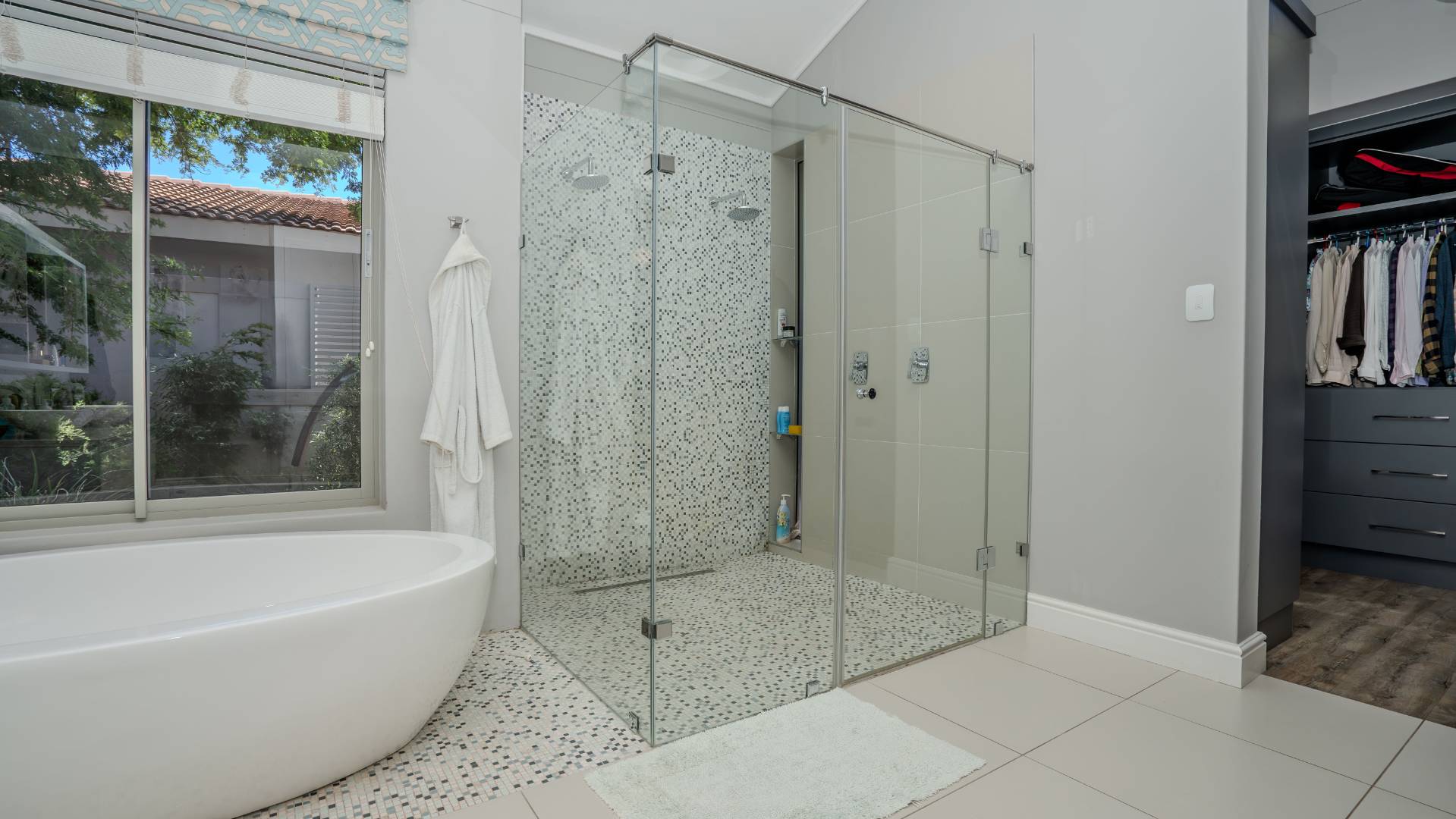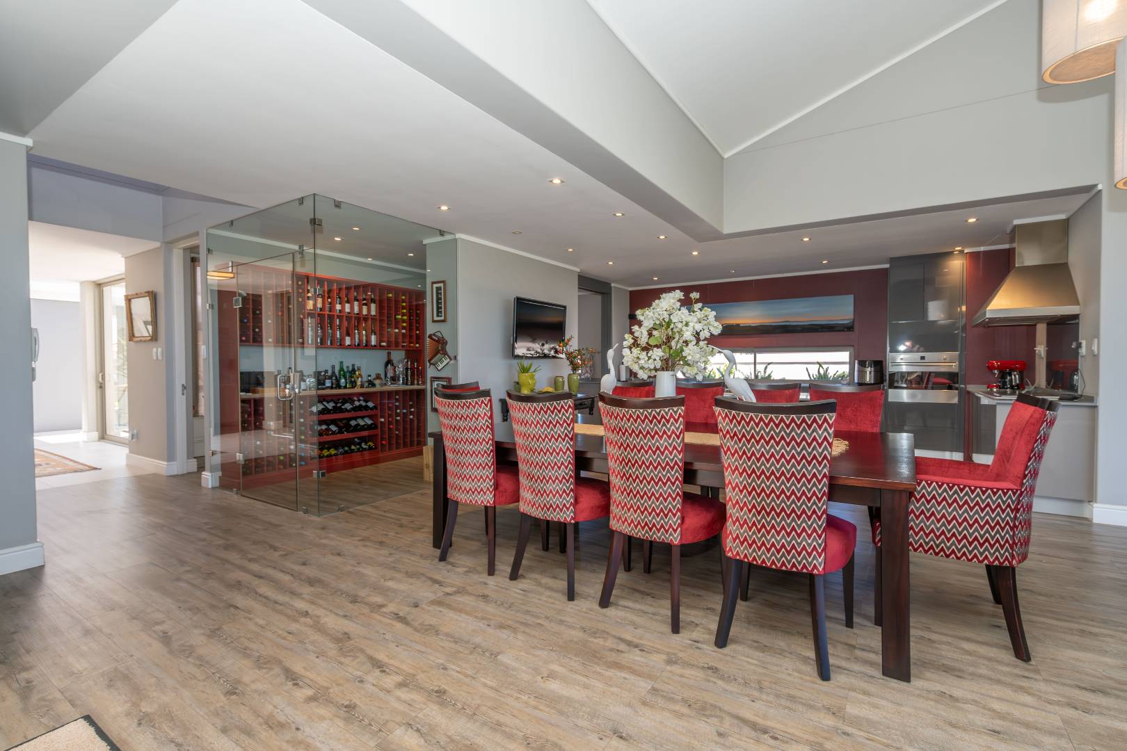 Upon arrival, you'll be welcomed by a striking foyer featuring a glass atrium that showcases a curated indigenous garden, highlighting native South African flora suited to the area’s climate.
