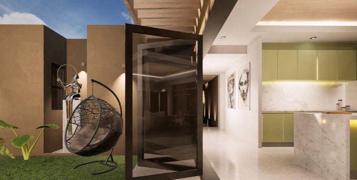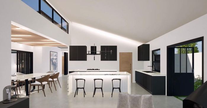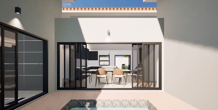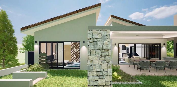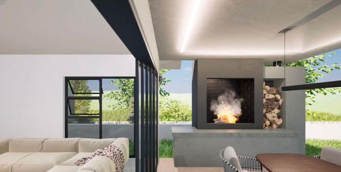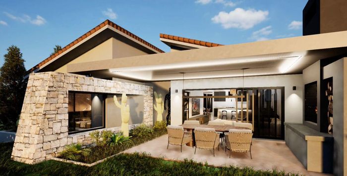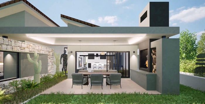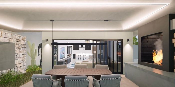 Step inside to find a beautifully planned interior with a spacious lounge and dining area, complete with a built-in braai and pizza oven, ideal for family gatherings and entertaining guests. The sleek, modern kitchen is fully equipped to meet your culinary aspirations.